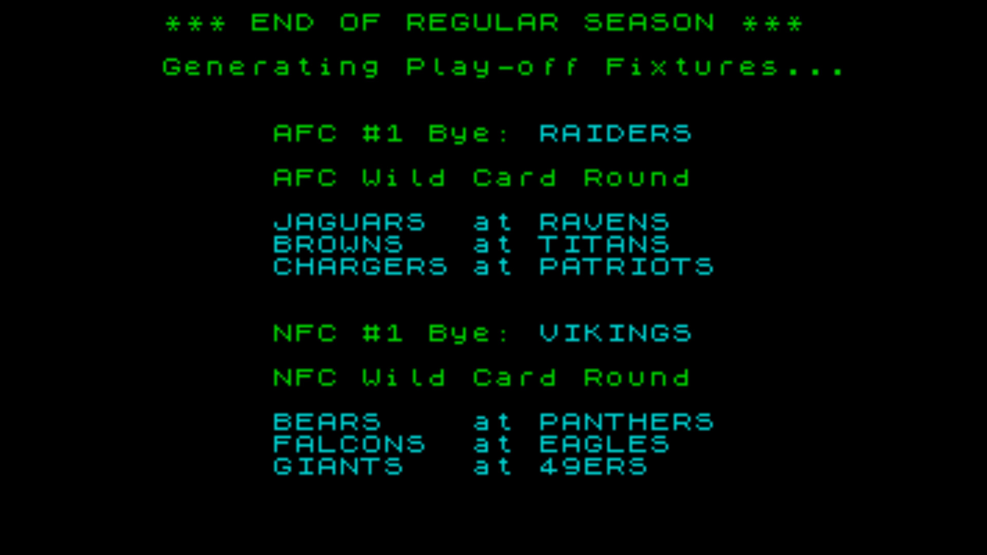 Guide your team through the 17 week regular season and potentially the Play-offs. Play any number of games from each week.