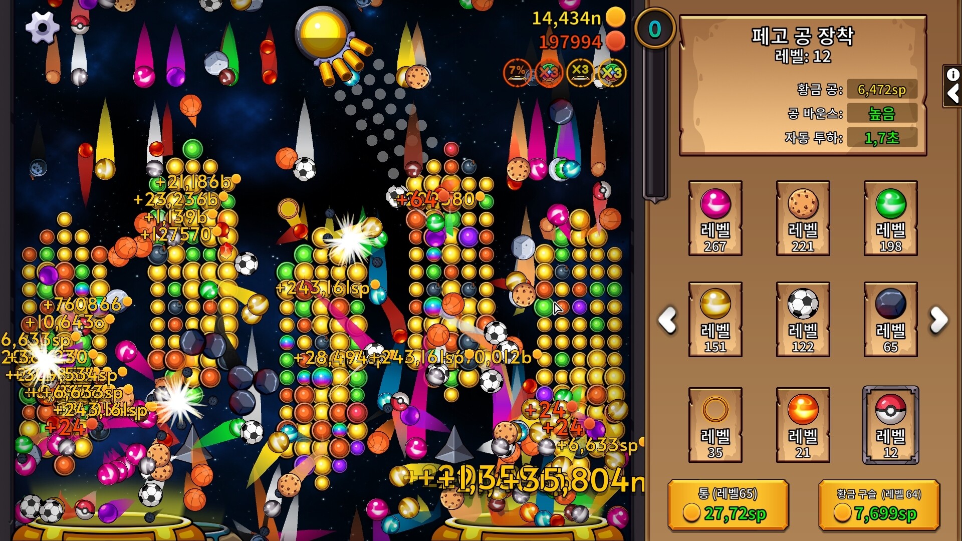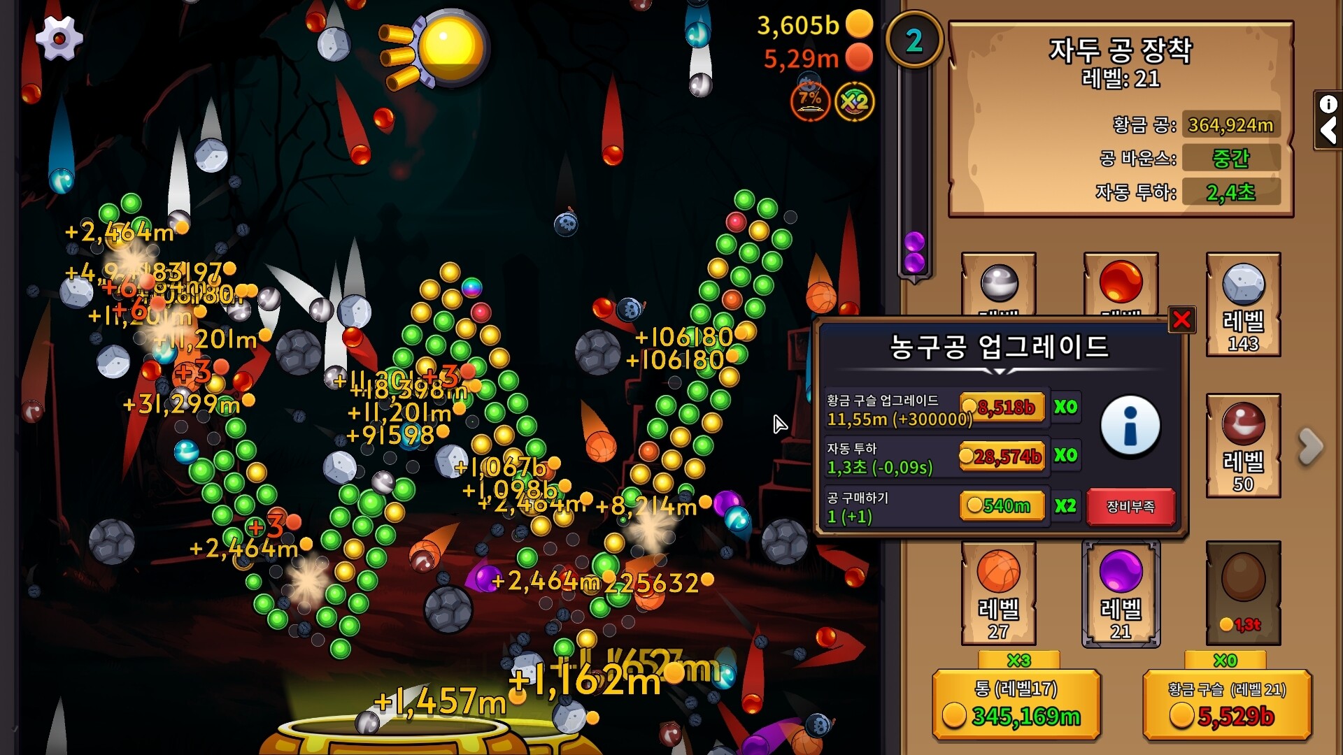게임 적합성 평가 보고서 제243호 (2025년 2월 16일 기준) ▶가격 [10/10] 5,600원 ▶장단점 [11/30] ▷장점 - 가장 방치형에 부합한 게임. - 업그레이드 별로 특색을 뛰는 공. ▷단점 - 기본 소리가 시끄러움. - 업그레이드 지행 속도가 log(n) 만큼 진전이 느리다. - 생각보다 리소스를 많이 먹어서 게임 여러개 켜면 이 게임이 자동으로 프리징 걸린다. (매우 불편;;) ▶신선도 [5/20] - 버블 슈터 비스무리하게 만든 방치형 게임. ▶개발사의 품위 [20/20] ▷유저와의 소통 - 토론장 스레드 이용할 것. ▷개발진들의 잡음 - 없다. ▶평가자의 취향 [8/20] - 해본 아이들러 게임 중 가장 방치형에 부합하긴 하나, 점차 방치해 두기만 하고 간간히 업글 누르기만 하는 평범한 아이들러와 다를게 없다 느껴짐. 종합점수 52.0점으로 방치형 좋아하면 추천은 함.