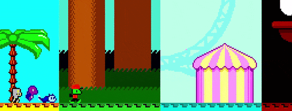 A 2D platformer inspired primarily by Kirby's Adventure and secondarily by classic Sonic. A collectathon with new characters and exits hidden around every corner, and an arcade game in which you compete for high scores. Cute and colorful, snacky and full.
