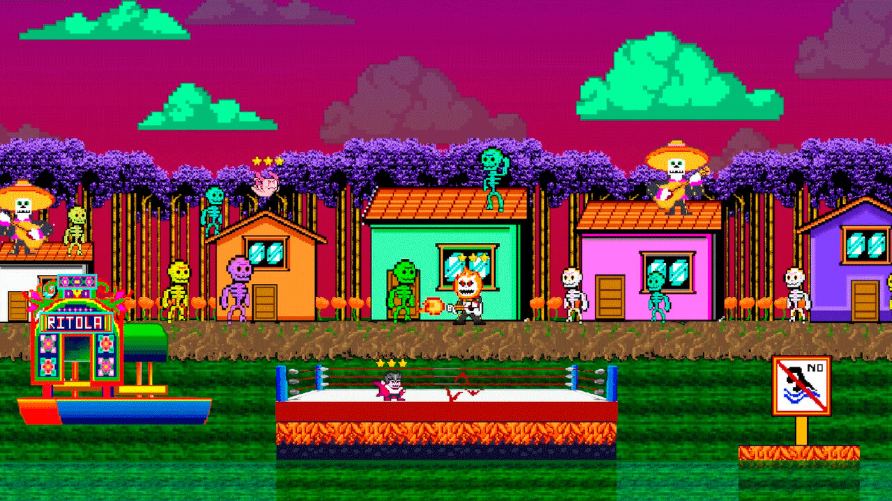 Inspired by authentic Mexican legends and myths, the music, colors, enemies, and levels will make you vibrate with a unique atmosphere full of Lucha Libre. It’s time to become a true luchador!