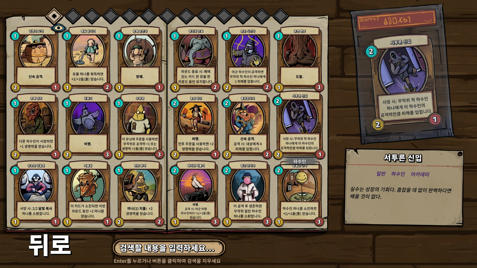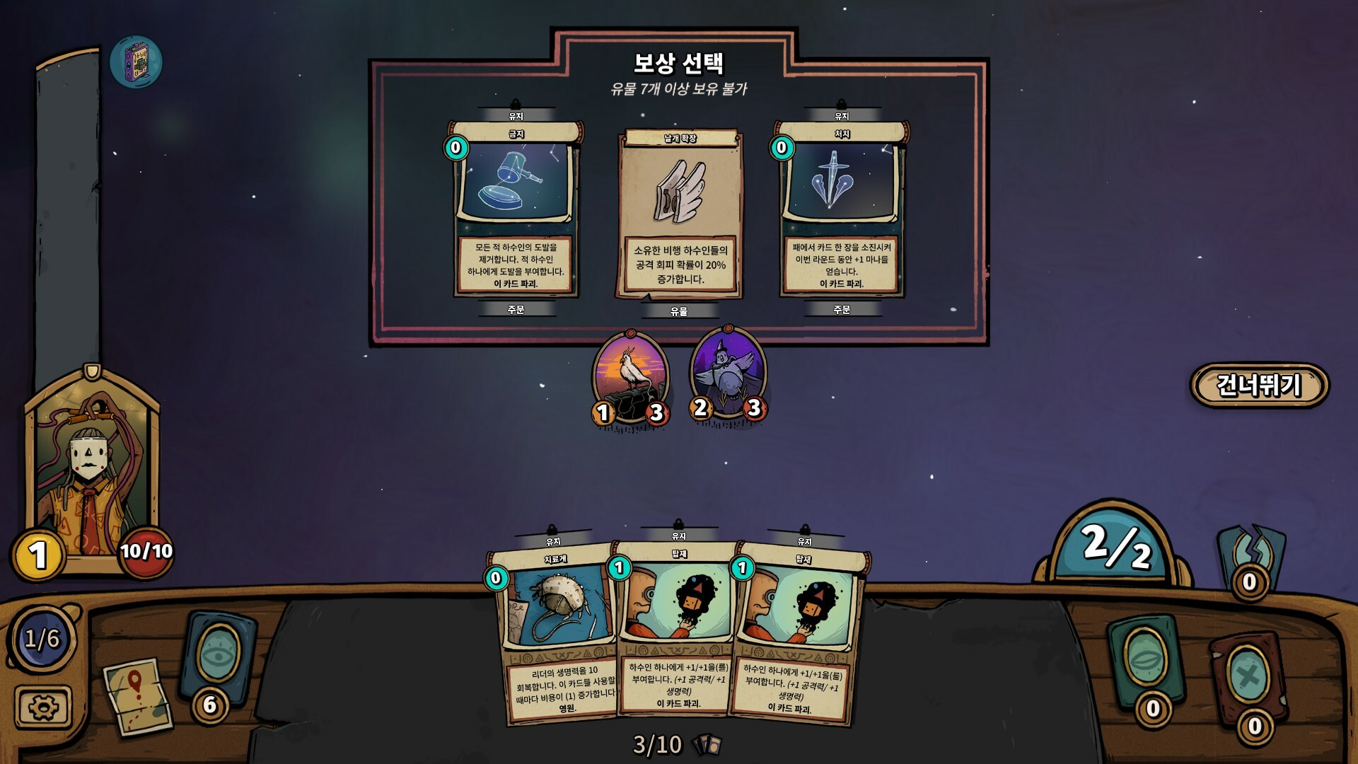 하수인, 주문, 유물을 조합해 고유의 덱을 만드세요. 라운드마다 새로운 카드를 선택해 무기를 강화하고, 강력한 시너지를 구축하고, 하수인에게 이로운 효과를 부여할 수 있습니다. 강력한 유물을 수집해 덱을 증강하고 별을 향해 도약하세요!
