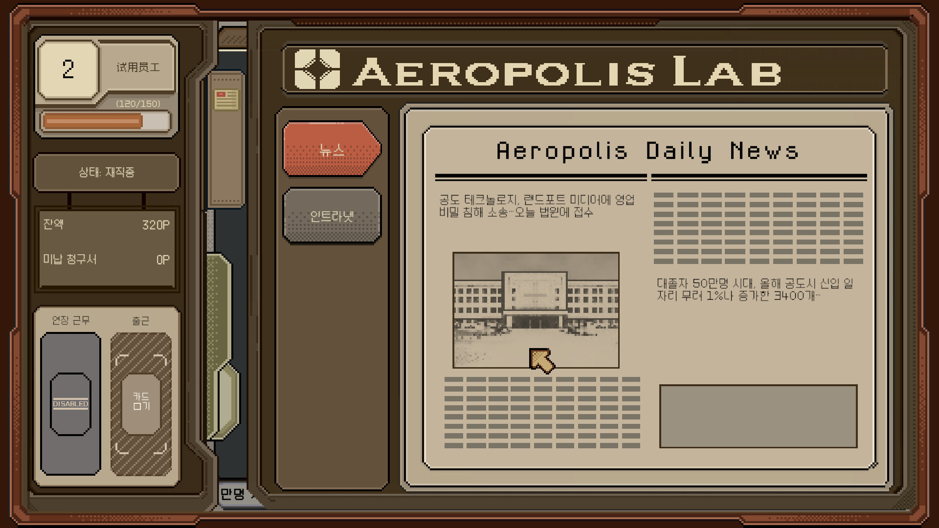 게임은 "가상"의 과포화된 취업 시장을 배경으로 합니다. 끝없이 몰려드는 외국인 노동자들 뿐만 아니라 갈수록 많아지는 인공지능 사원들도 TO를 차지하고 있습니다. 플레이어는 면접 심사에서 높은 인사 평가를 받아야만 높으신 분들에게 좋은 인상을 남길 수 있습니다. 한편 면접 경험을 쌓아 갈수록 당신은 이 회사, 내지 이 도시의 진실을 마주하게 됩니다...