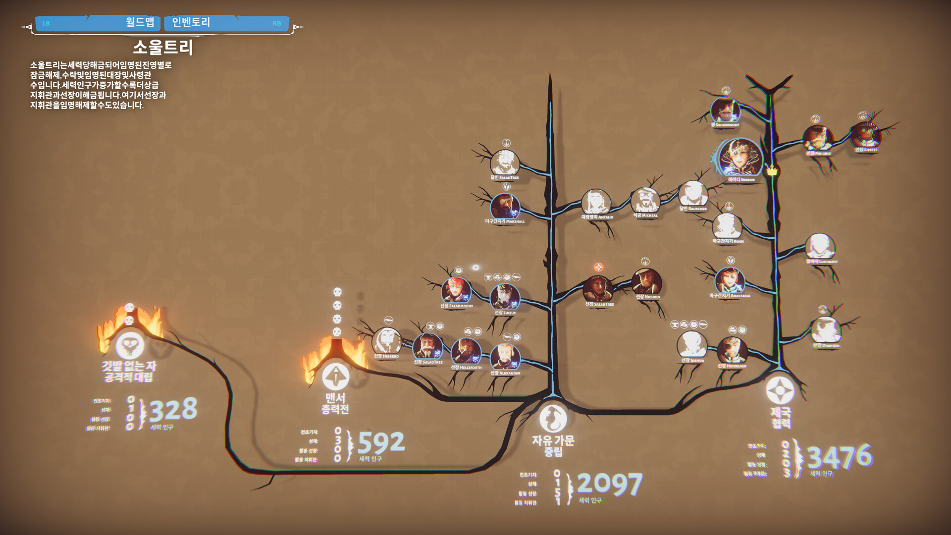 이 게임에서는 자원을 위한 무역로를 설정하는 것 외에는 비용이 거의 들지 않는 거대한 요새를 설계하고 성장시켜야 합니다. 성장함에 따라 다른 진영의 인구를 초대하여 '영혼나무'에서 진영 고유의 콘텐츠를 잠금 해제할 수 있습니다.