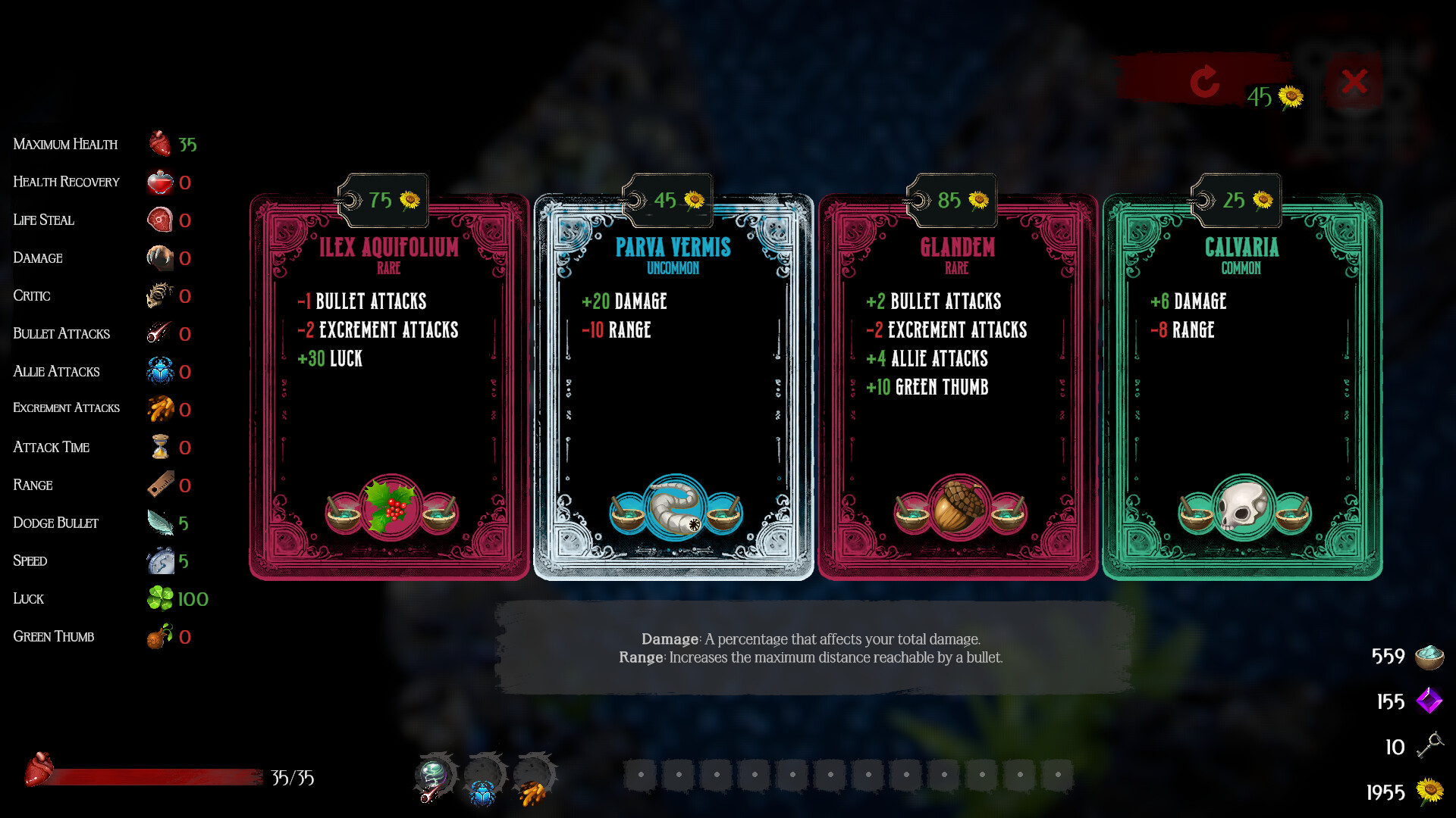 - 숨겨진 보물: 내려가면서 저주받은 풍경 곳곳에 흩어져 있는 기괴한 인터랙티브 오브젝트를 발견하세요. 운에 따라 전투의 흐름을 바꿀 수 있는 운명의 슬롯을 돌리세요. 주사위를 굴려 열쇠, 꽃, 보석을 찾으세요.