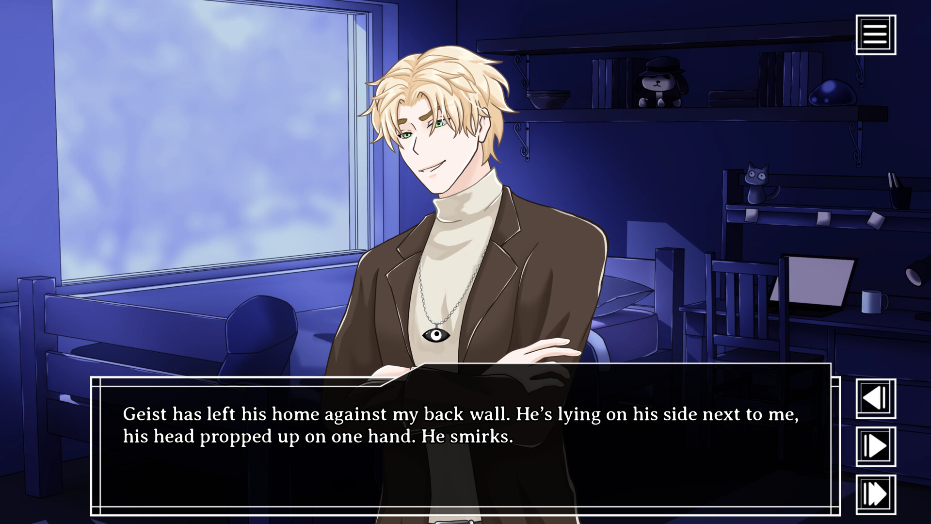 A dark, psychological romance VN about a British ghost who has haunted you since childhood. When you get close to a new boy at college, he starts to get possessive, and the mind games begin!