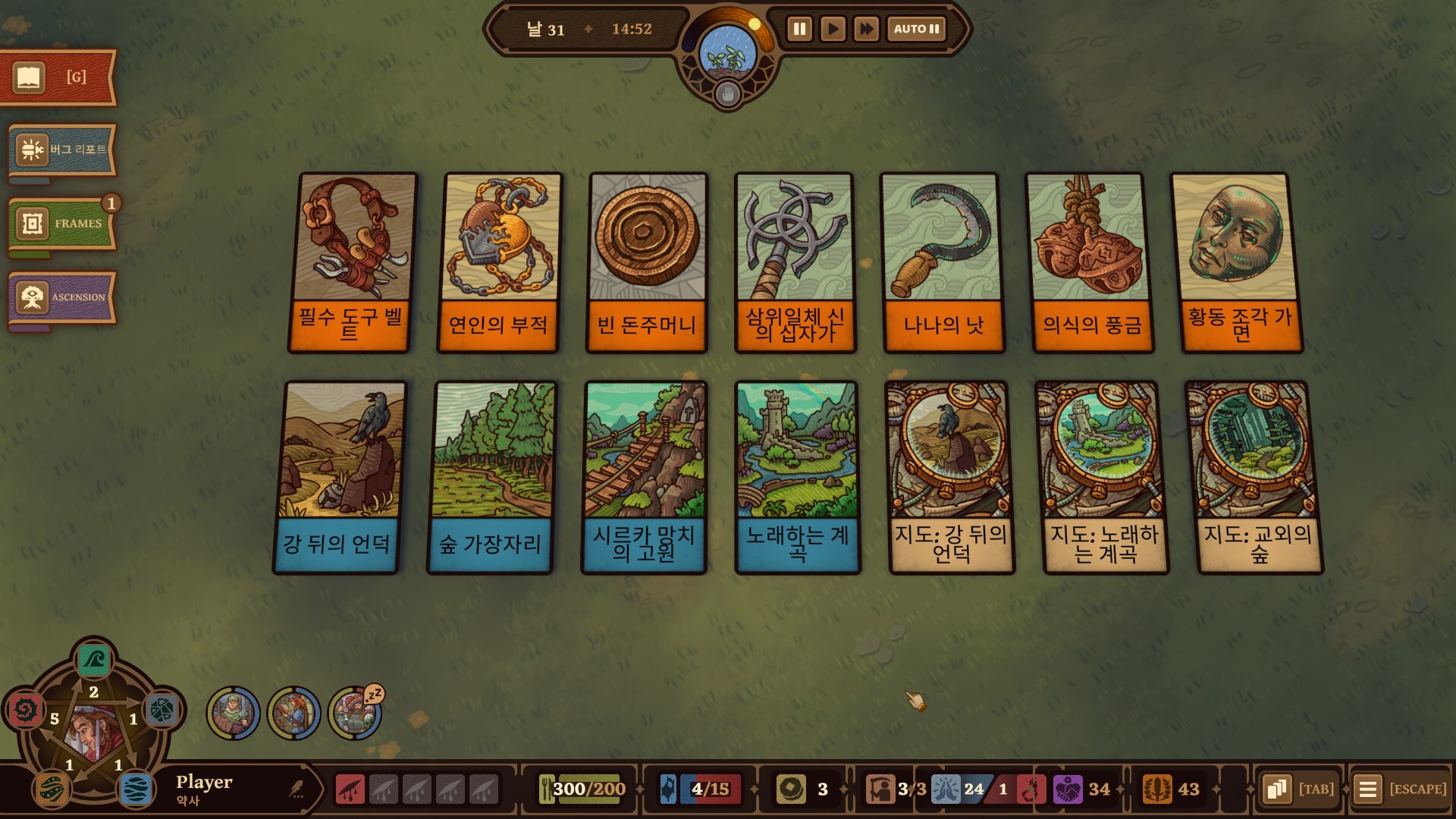 개인적으로 이런게임 좋아해서 승천까지는 해봤는데 기본적으로 연금술사고 약사인데 고객이 지질이도 안와서 돈이 수급 안되서 아무것도 못하는 경우가 많습니다. 돈이 없으니까 고용한 농부 임금을 못줘서 기껏 고생해서 키운 농부가 떠나가고 어떻게 돈을 다시 모아서 농부를 사면 그 농부 다시 키우고... 두번째 문제는 난이도가 꽤 높습니다. 두가지 기둥에 대해서 기준점 이상을 달성해야하는데 물약을 먹고 유물끼고 도전했는데 겨우 깹니다. 그리고 그렇게 안할거면 포션을 제때 알맞은 종류로 준비해둬야하는데 이건 돈이 없어서 기본적으로 힘든것도 있고 동물시체가 필요한 포션이 필요한경우 던전을 깨야 수급이 더 잘되서 꼬리에 꼬리를 무는 느낌이 되기도 합니다. 포션 수급 문제도 근본적으로 돈만 많으면 어느정도 해결이 되는 문제라서 손님의 빈도를 늘리거나 손님을 받는 카드를 하나 추가해주는게 좋아보입니다. 그래도 오랜만에 이런유형의 게임을 해서 재밌었어요 나중에 업데이트 많이 했을때 다시 오겠습니다 ㅎㅎ