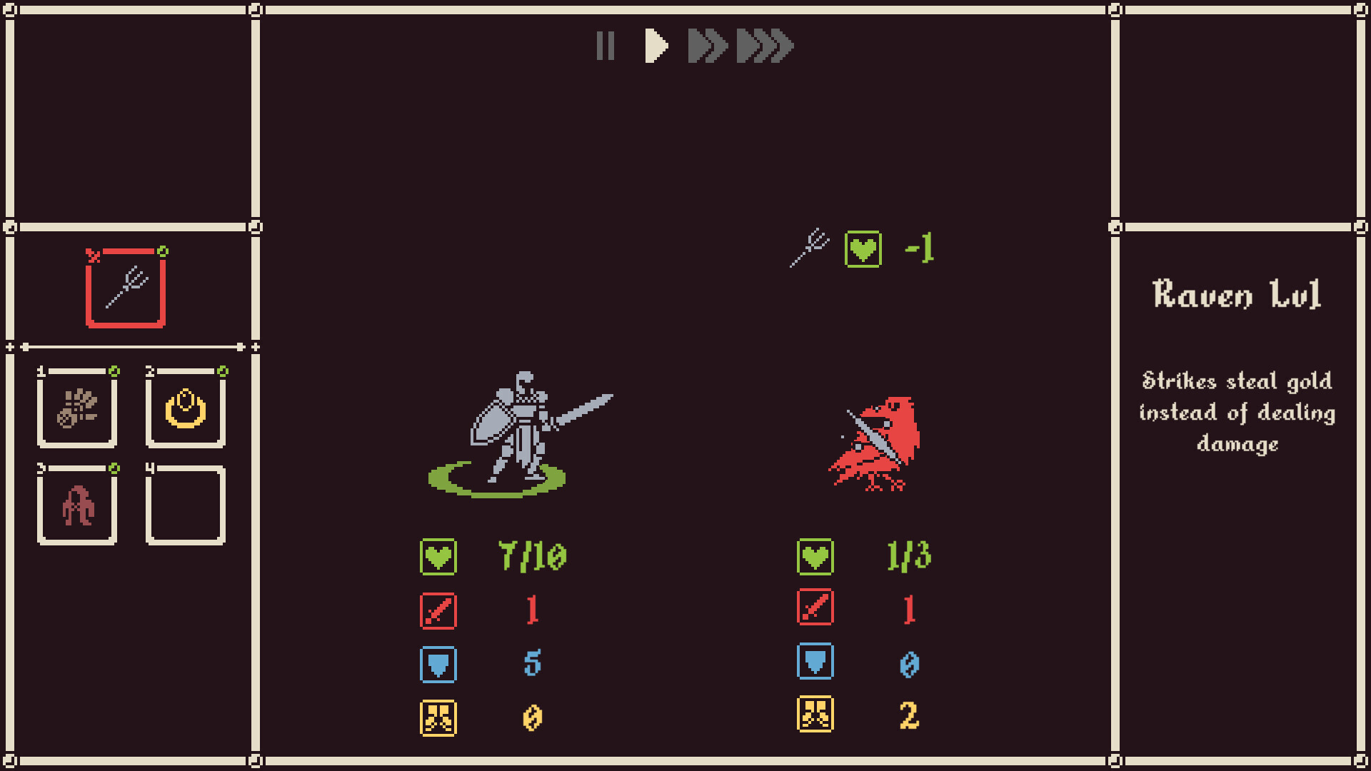350개가 넘는 아이템으로 다양한 전략과 시너지를 추구하여 각 괴물 보스의 독특한 챌린지에 맞서보세요. 모든 방어구를 무시하는 맹렬한 공격으로 돌진하는 레이저클로 그리즐리에게 사냥당한다면, 최대 체력, 속도 또는 피해를 우선으로 고려하는 장비에 얼마나 많은 방어구를 희생해야 할까요? 왕국을 맴도는 하급 몬스터는 방어구가 없는 영웅을 상대로 소모전을 벌일 것이고, 레이저클로 그리즐리를 처치한다면, 다음에 여러분을 쫓는 강력한 적을 상대하는 데 필요한 방어구를 준비하는 데 3일로는 모자를 수 있습니다. 방어구 대신 속도와 공격을 강화하는 아이템을 여러 개 찾아 먼저 강하게 공격하여 적을 빠르게 제압할 수도 있습니다. 때로는 적이 공격을 시작하기도 전에 말이죠. 운 좋게 사프란 깃털을 발견했다면 전투 중에 빠른 속도를 이용해 상처를 회복하는 데 도움을 받을 수 있습니다. 하지만 상대의 공격력을 자신의 공격력으로 흡수하는 흑기사에게 쫓기는 경우라면, 순수한 공격력보다는 높은 방어력이 우선시됩니다. 면도날 비늘 방어구의 도움으로 적에게 피해를 반사하고, 마법이 걸린 루비 귀걸이로 매 턴에서 피해를 주면, 흑기사는 스스로 흡수할 순수한 공격력 없이 지속적으로 피해를 입게 됩니다. 하지만 우연히 강력한 마법 무기를 발견했다면, 그것이 앞으로의 전투에서 흑기사를 강하게 만들 것이라는 걸 알면서도, 살아남았을 때 도움이 될 거란 기대를 품고 집어들 용기가 있을까요?