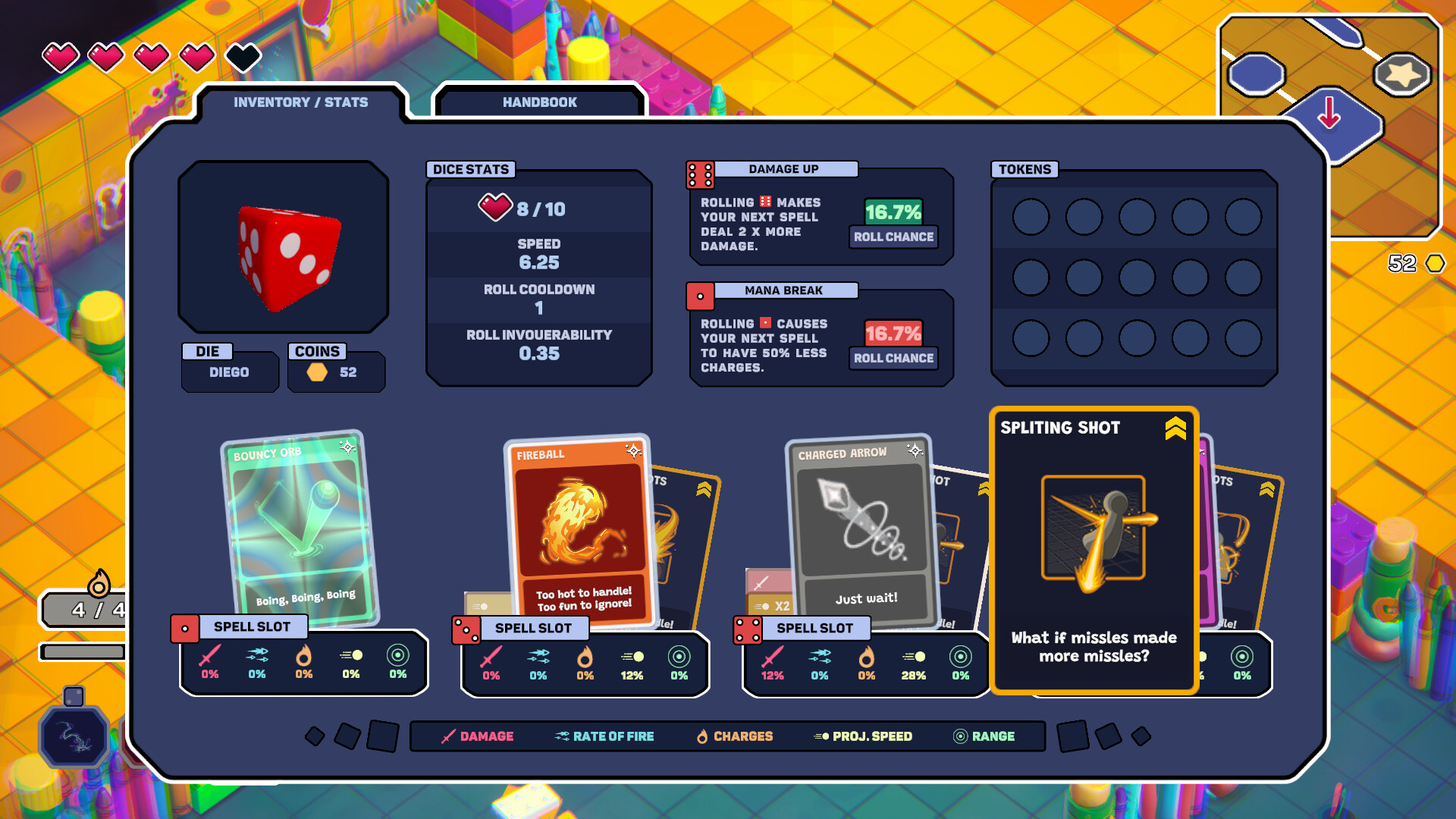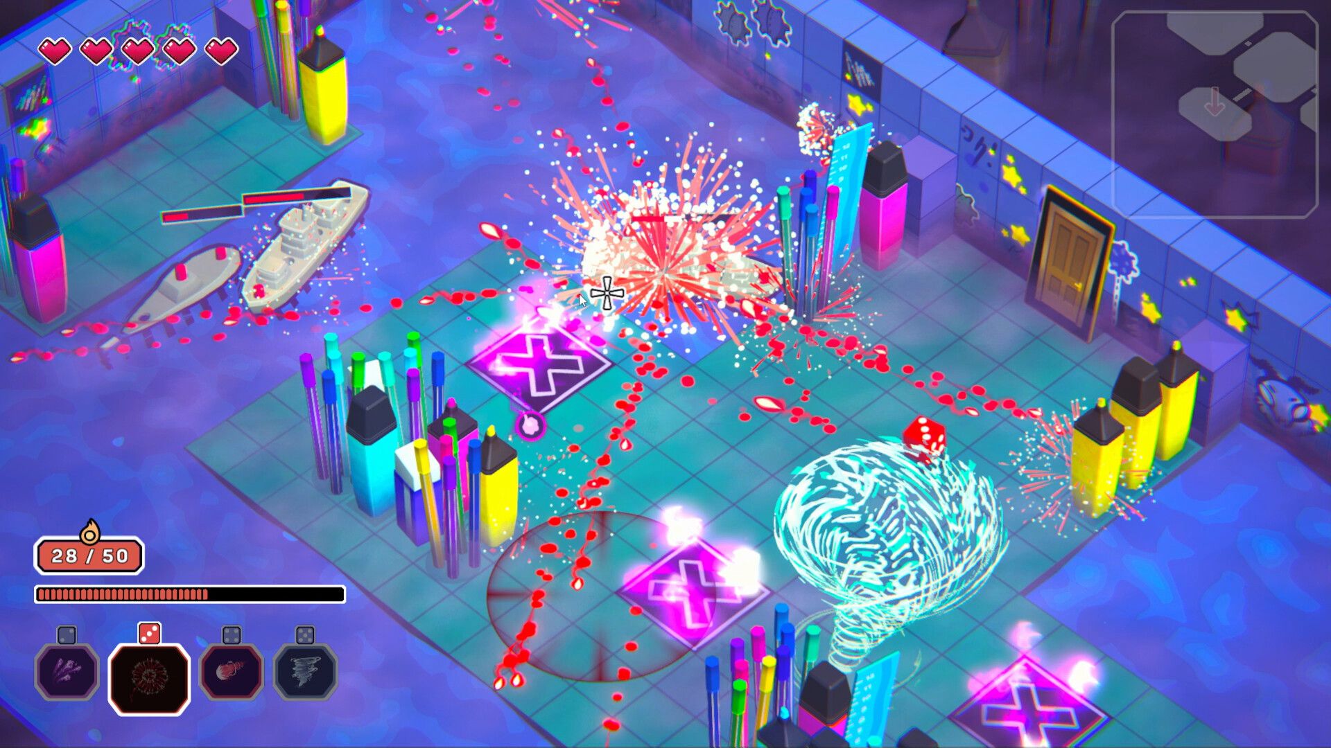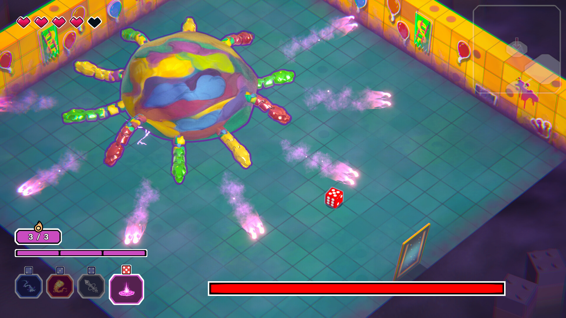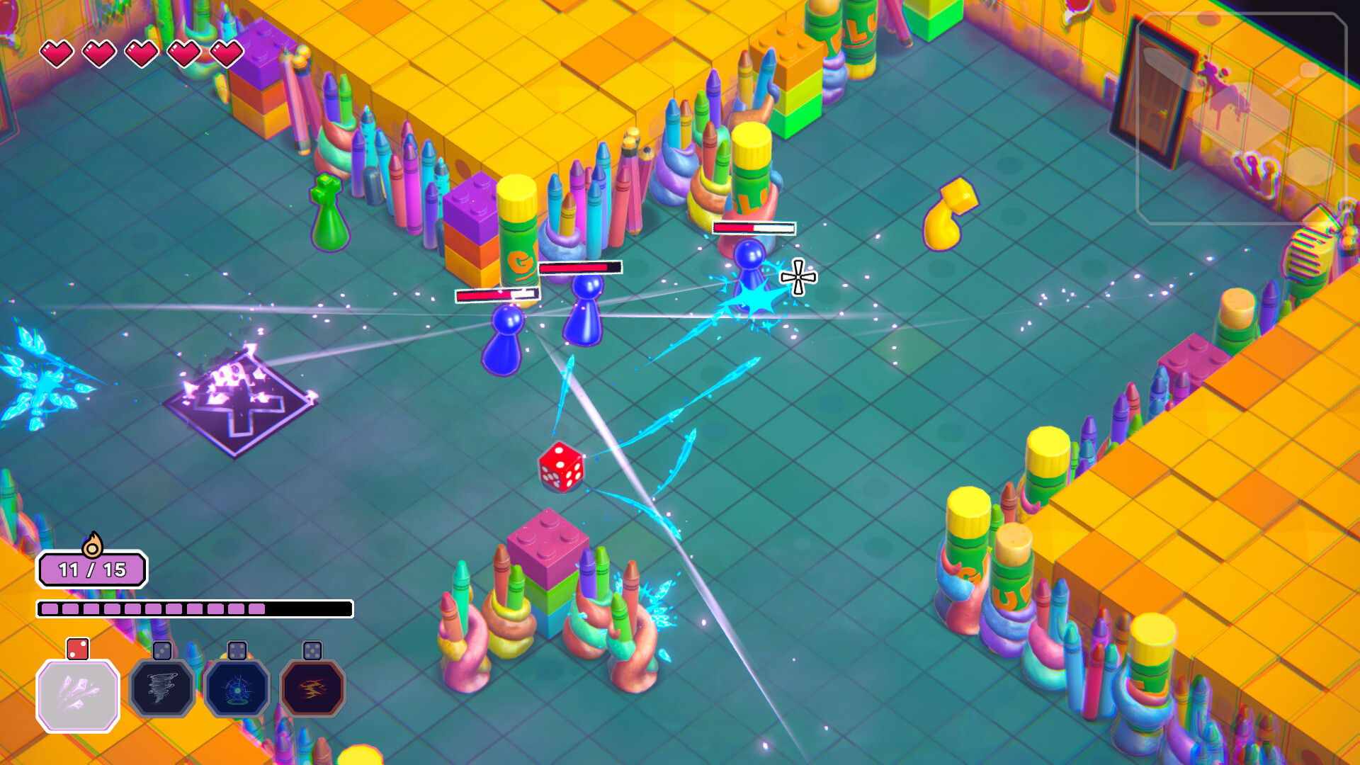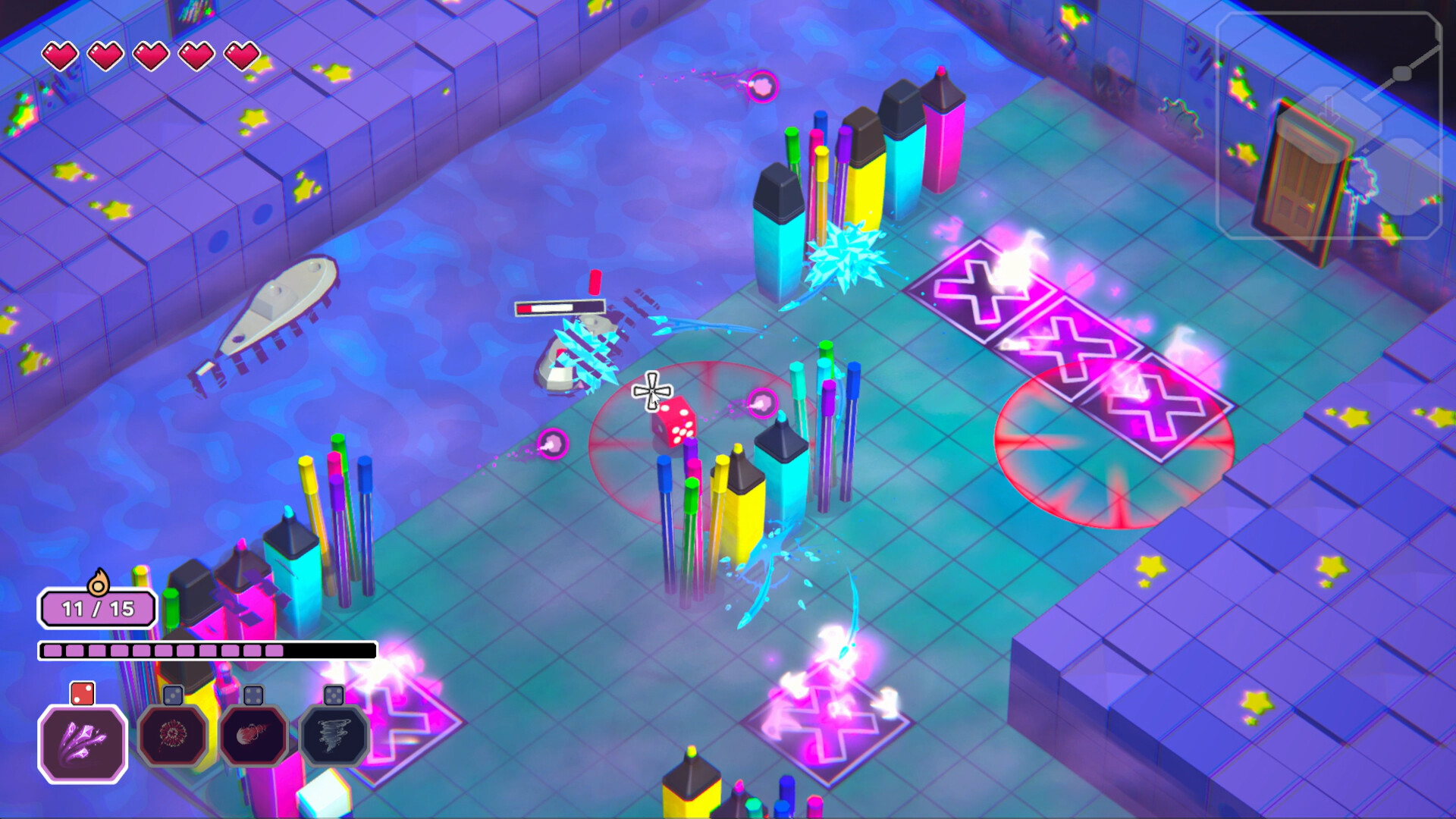 여러분은 주사위이므로 여러분이 지닌 강력한 무기는 굴리는 것입니다. 주사위를 굴려 적의 공격을 피하면서 무기를 교체하고 재장전하세요. 다양하고 크레이지한 무기로 채울 수 있는 슬롯 4개가 있습니다. 모든 시도는 다르므로 자신이 좋아하는 방식으로 이 게임에 접근할 수 있습니다.