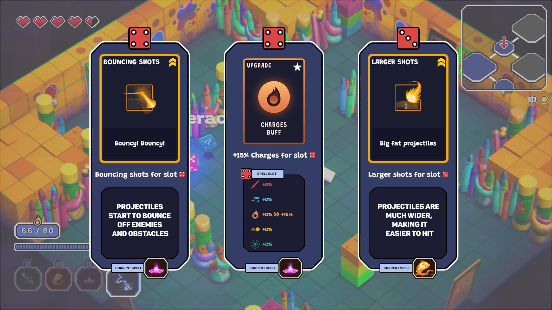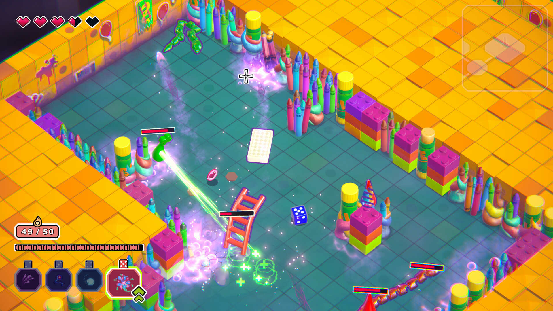 보드 게임 캐비닛을 가로지르며 다양하고 고유한 적들과 전쟁을 치르세요. 각 플로어 끝에는 최종 보스가 기다립니다. 최종 보스에게 직접 가시겠습니까, 아니면 승산을 더 높게 만드는 장비를 탐색하시겠습니까?