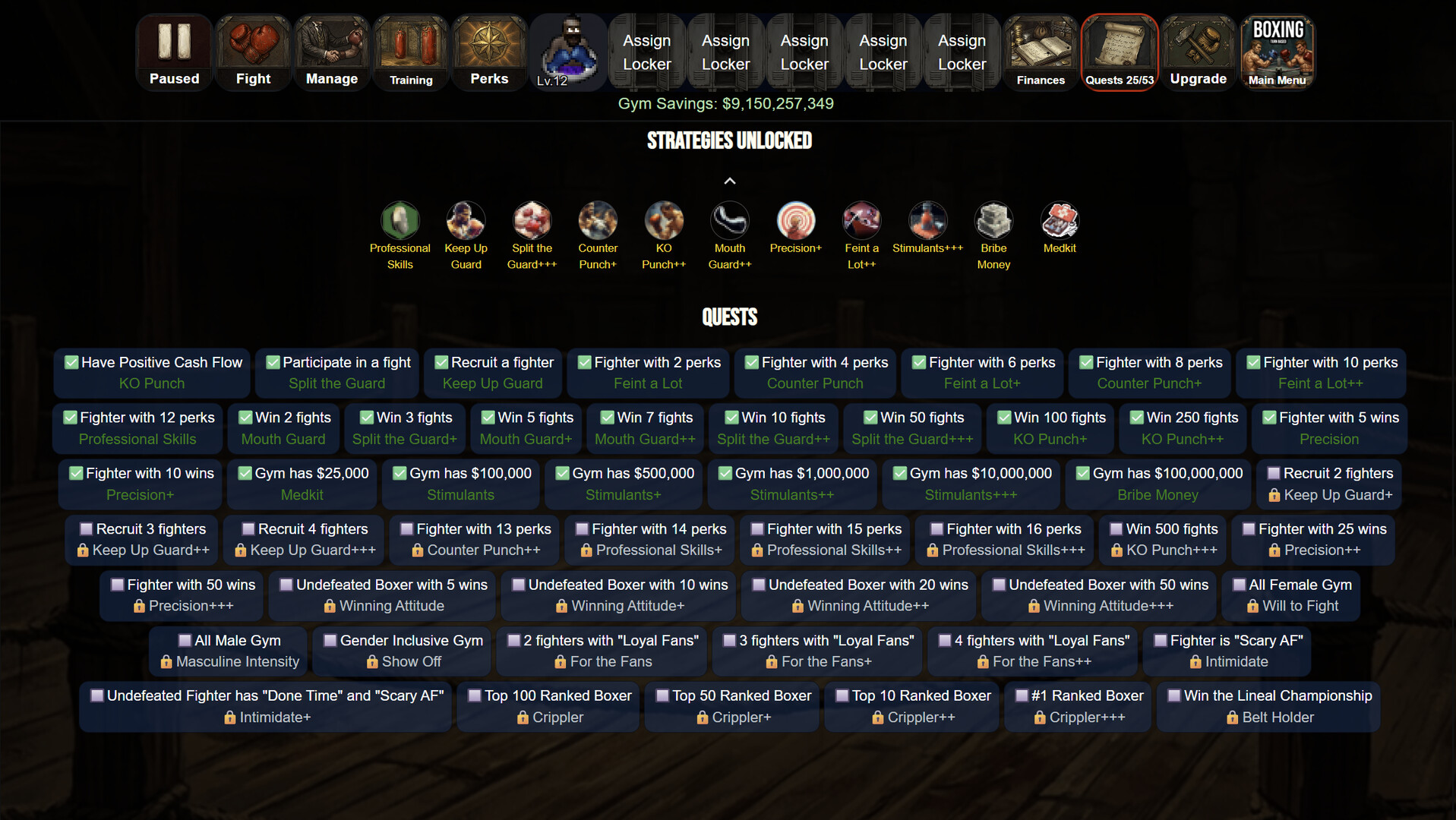 Perks는 게임의 다양한 요소에서 복서의 성과를 끌어올려주는 특별한 능력입니다. 체력과 파워의 증가부터, 방어 동작의 개선 또는 링에서의 전술적 이점까지 선택지는 다양합니다. 매니저로서 활성화할 Perks를 골라 보세요. Perks를 각 복서의 재능, 약점, 파이트 스타일, 그리고 체육관의 전반적인 목표와 시너지를 이루게 하세요.