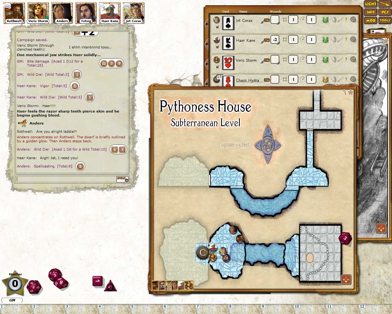 Fantasy Grounds is an application acting as a virtual online gaming table primarily intended for pen and paper style narrative role playing games. It is designed to perform many of the things you can do while playing at a conventional gaming table and move it online.