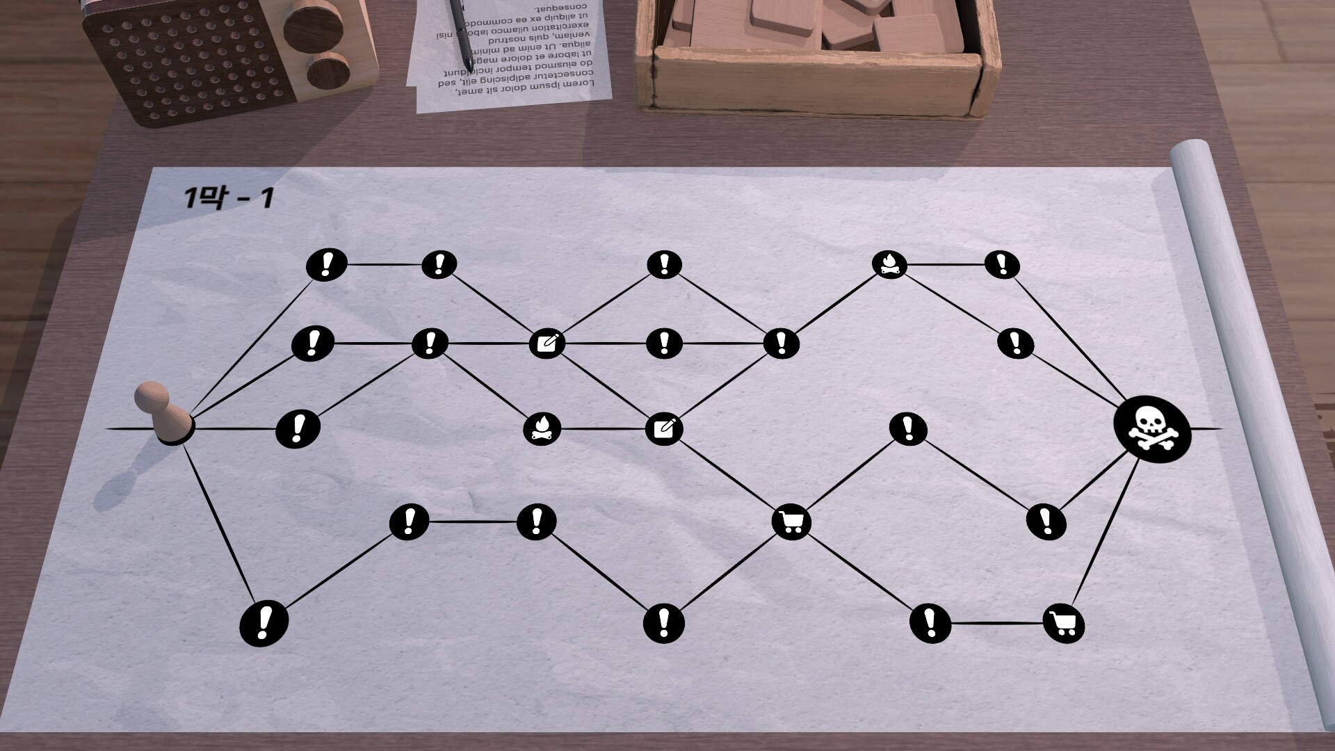 TRPG 느낌의 텍스트 어드벤처와 덱 빌딩 게임을 섞은 느낌의 게임입니다. 특성, 강화, 덱 빌딩을 하여 최종적으로 마지막까지 가는 것이 목표입니다. 빠르게 배우는 것을 목표로 한 것인지 빠르게 익히지만 깊이가 부족한 느낌이 있습니다. 그래서 텍스트 어드벤처라고 생각하면 괜찮지만 덱 빌딩 게임으로 생각하고 한다면 다소 아쉬울 수 있습니다. 장점 1. 빠른 진행 - 각 선택지에 따라 전투 없이 진행되는 경우도 많아 각 장의 진행이 타 게임에 비해 빠르게 진행됩니다. 2. 간단 명료한 다 회차 - 다 회차 특전을 단순화하여 최대 체력, 골드 로 생존, 덱빌딩을 유도합니다. 3. 텍스트 어드벤처류 감성 - 다양한 대화 이벤트로 텍스트 어드벤처의 감성이 있습니다. 아쉬운 점을 꼽자면 1. 편의성 - 업그레이드 시 마우스 오버를 했을 경우 그 카드의 능력이 아닌 업그레이드 시 "어떻게" 변하는지 가 표시되었으면 좋겠습니다. 어떤 건 조건이 변하는 것도 있는데 이걸 표시해 주는 건 중요하다고 생각됩니다. - 휴식에서 선택하고 뒤로 가는 기능도 있었으면 좋겠습니다. 예를 들어 업그레이드 선택 시 자신이 원하는 카드의 업그레이드 불가능하다는 걸 알게 되어 뒤로 가고 싶은 경우 뒤로 가고 싶었습니다. - 선택지로 특성을 획득 시 가운데에 얻게 된 능력을 간략하게 표시되었으면 좋겠습니다. 다시 왼쪽 위 캐릭창을 들어가 능력을 확인해야 하여 불편한 경우가 있습니다. - 카드와 특성을 확인할 수 있는 기능이 없습니다. 메인화면에서 카드와 특성을 확인하는 기능 및 강화 시 능력 변화도 표시되었으면 좋겠습니다. 2. 덱빌딩 - 타 덱빌딩 게임에 비해 특정 "키워드"를 중심으로 하는 카드가 적고 강화 능력이 애매한 것 같습니다. 예를 들어 "힘", "방어도", "에너지"등의 키워드를 중점으로 덱빌딩을 하는 것과 같은 덱 빌딩의 키워드가 부족한 것 같습니다. 또 한 덱 빌딩 과정에서 카드 강화 + 주사위 변경 이 필요한 경우도 많아 선택지에 따라 3장까지 덱의 방향성을 잡는 게 쉽지 않았습니다. 3. 난이도 - 각 장의 보스의 난이도가 보스에 따라 차이가 큽니다. 예를 들어 1장의 보스 중 사이비의 경우 아군까지 공격하는 전체 공격이라 기본 방어만 해도 이길 수 있지만 다이너마이트의 경우 필드에 남아 도구 제거 카드가 없다면 질 수밖에 없는 상황이 나옵니다. 다이너마이트가 필드에 남는 것은 타 덱 빌딩 게임에서 손 패의 크기를 줄이는 효과에 해당합니다. 이런 강력한 효과는 거의 사용하지 않습니다. 이런 기능이 있다고 하여도 다음 턴에 사라지도록 하지만 계속 남아있는 것은 무척이나 강한 디버프라고 생각합니다.
