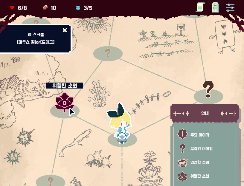 선택지를 골라 꽃을 모으면서 맵의 끝까지 도달해주세요.