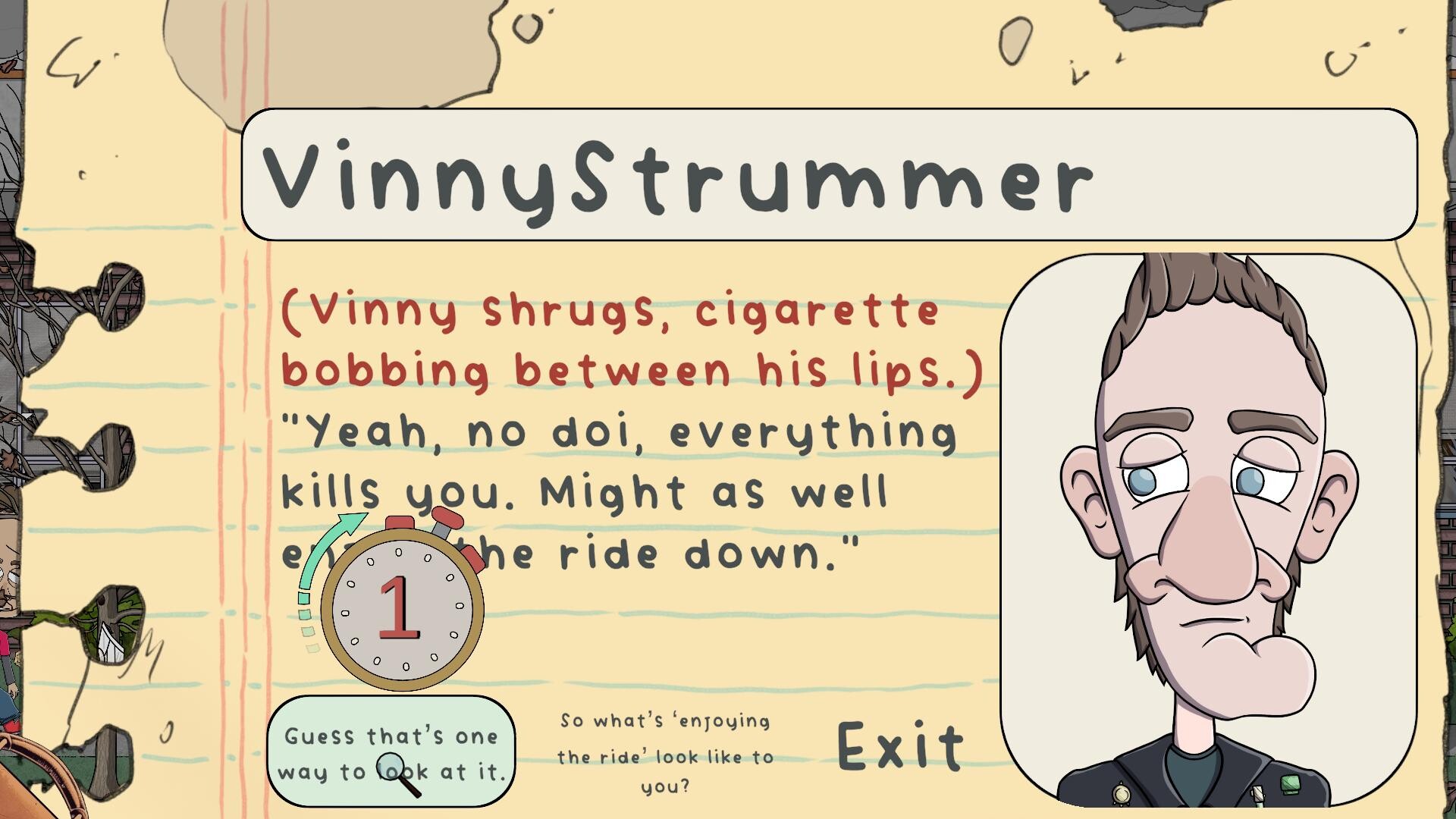 SideEye High는 90년대 고전의 감성과 현대적인 조사 메커니즘을 결합한 성인용 다크 코미디 포인트 앤 클릭 어드벤처입니다. 복도, 사물함, 껌 자국이 남은 바닥 타일까지 꼼꼼히 조사하세요 — 이 학교에서는 모든 것이 증거입니다.