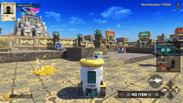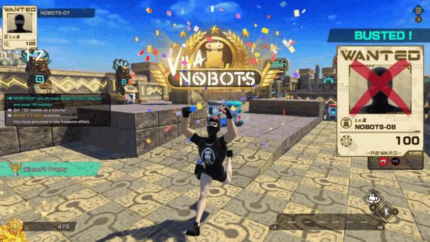 As a NOBOT — a treasure hunter in disguise — your goal is to get rich and rise to the top of the wanted rankings!