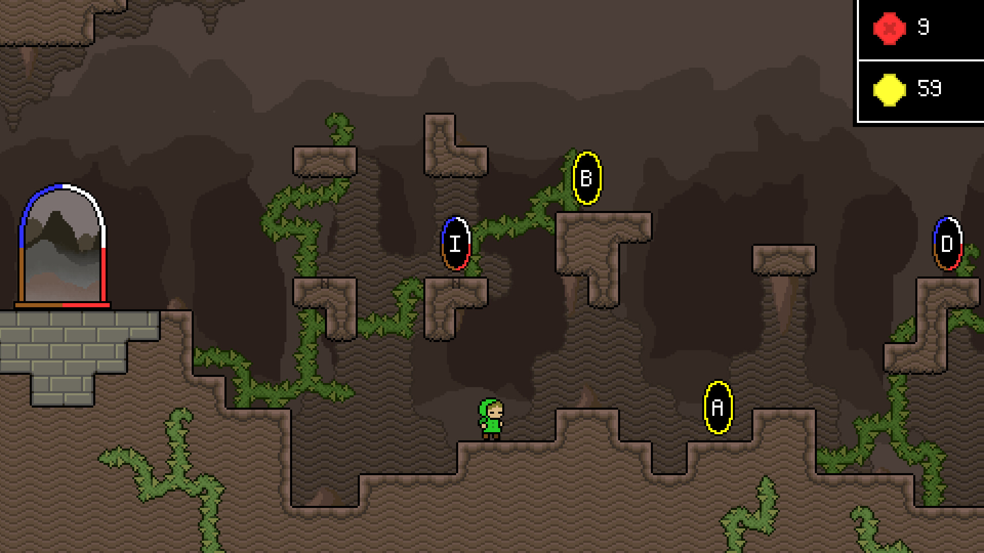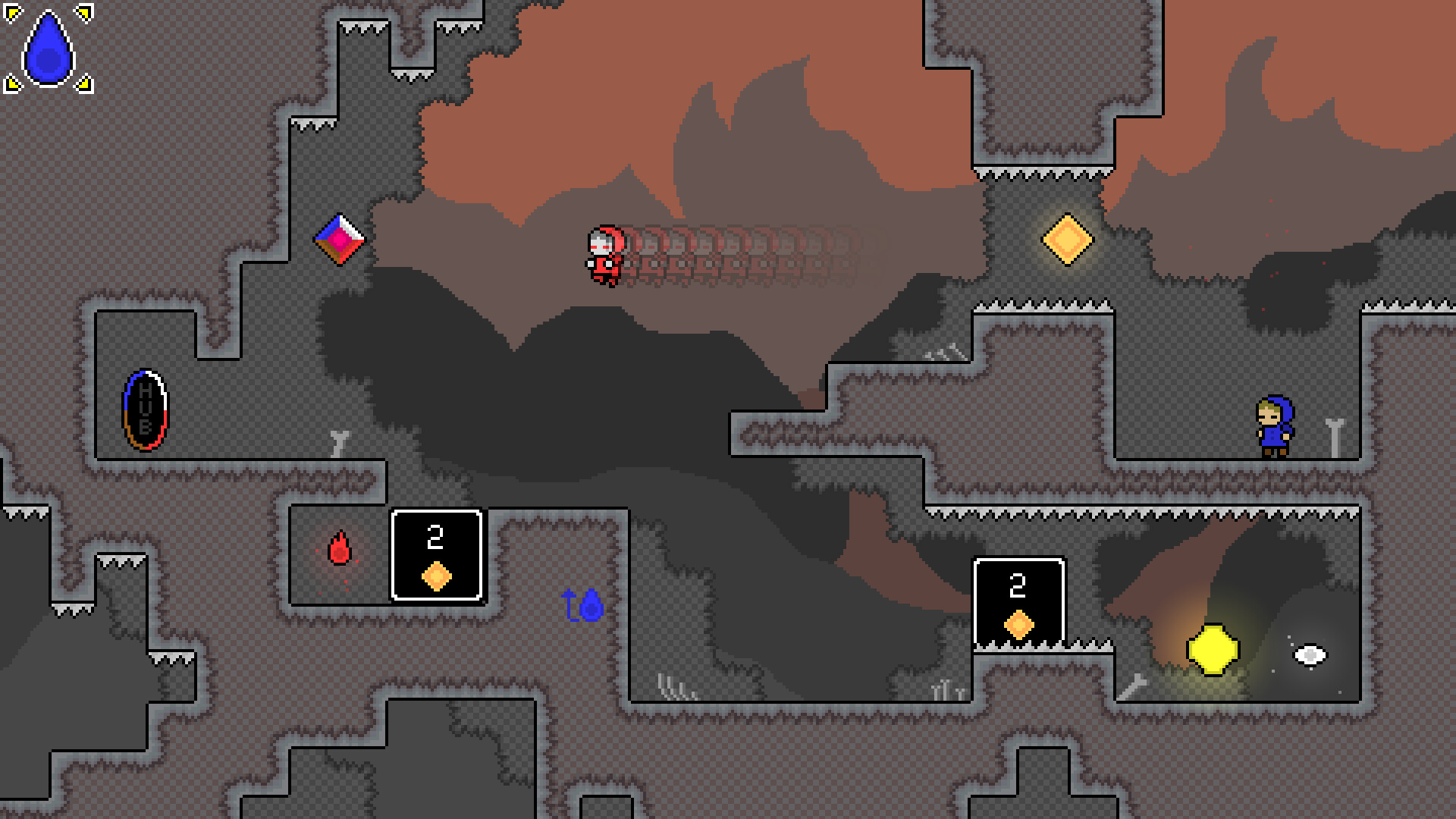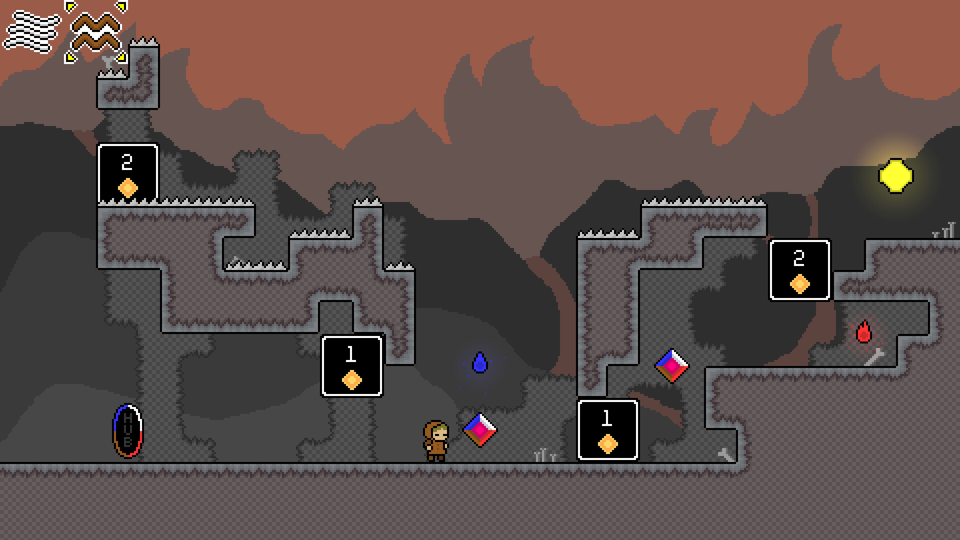 A puzzle platformer where you collect Elements and use their powers to move around in various ways. Each Element you collect becomes the next one you use, so pay attention to the order!