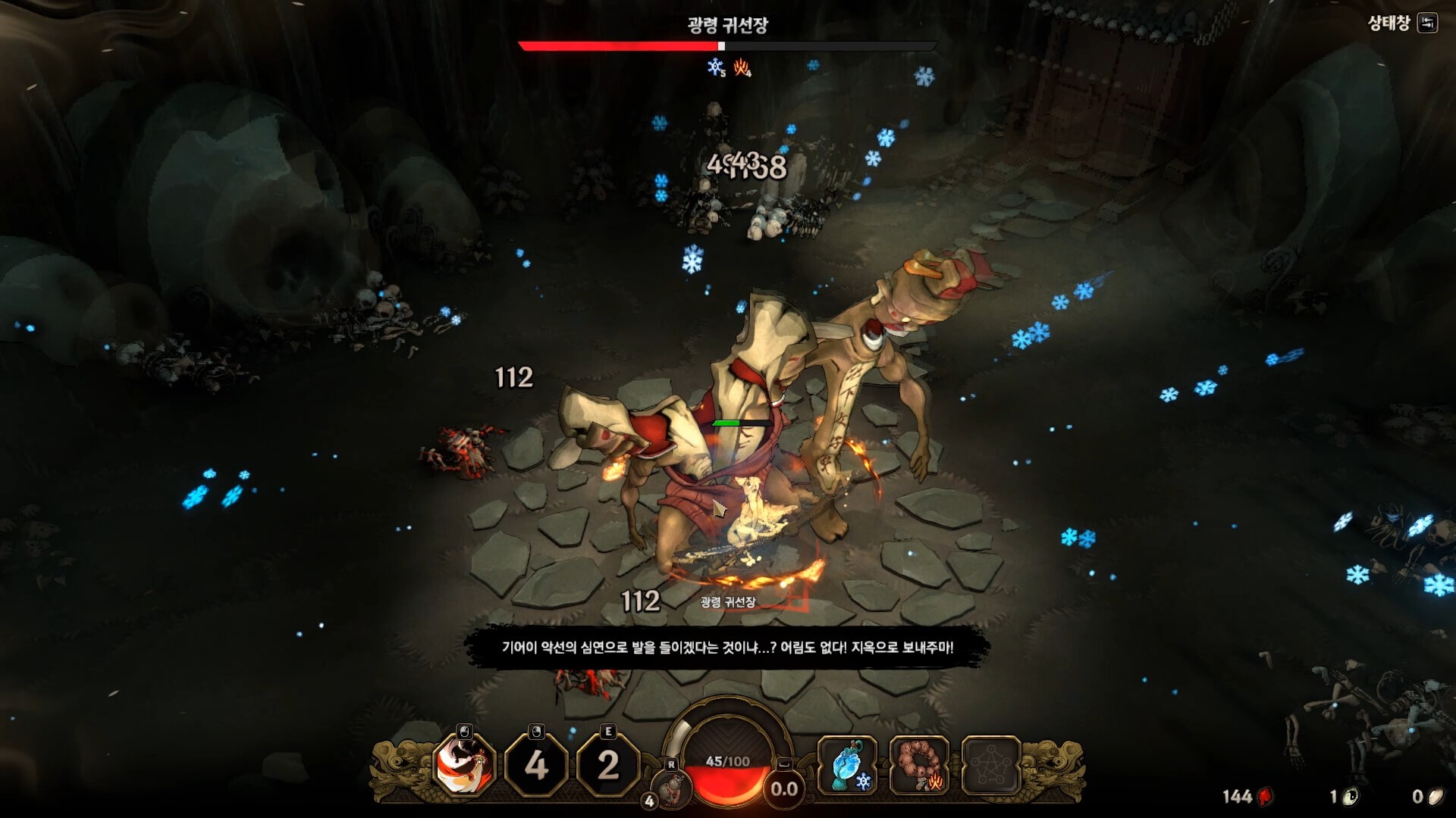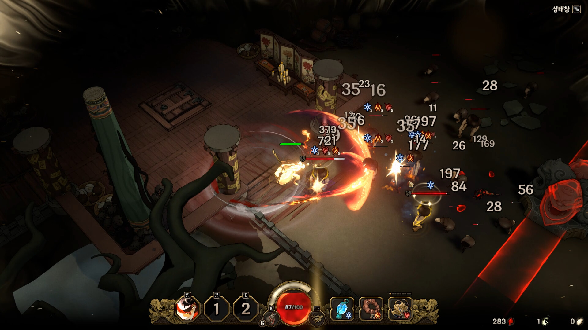 한국 무속 신앙에서 영감을 받은 로그라이트 핵앤슬래시. 신령한 무기를 각성하고, 원소 귀물을 흡수하며, 혼돈의 시너지 속에서 기억과 처벌의 저주받은 순환을 돌파하세요.