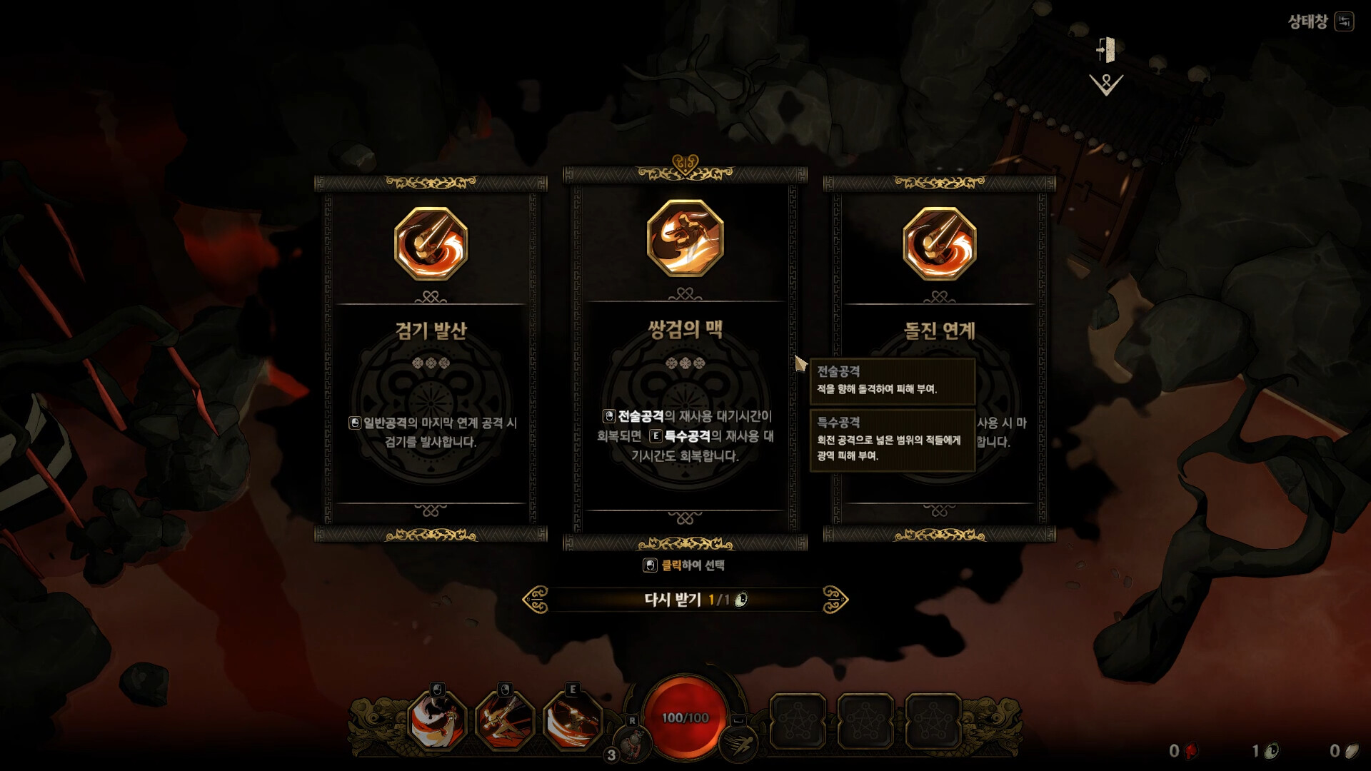 각 챕터는 분기형 노드 맵입니다. 각 스테이지 이후, 다음 경로와 보상을 선택하세요: 공명을 통해 무기를 강화하고, 새로운 귀물 공명을 얻으며, 각성 패시브를 해금하거나, 능력치를 조정하는 영기를 수집하세요. 혹은 위험을 감수하고 강화 아이템을 구매할 수도 있습니다. 죽을 때마다 장비는 초기화되지만, 매 실행은 당신을 더 영하고 치명적인 조합에 다가가게 만들며, 예측할 수 없는 방식으로 빌드를 진화시킵니다.