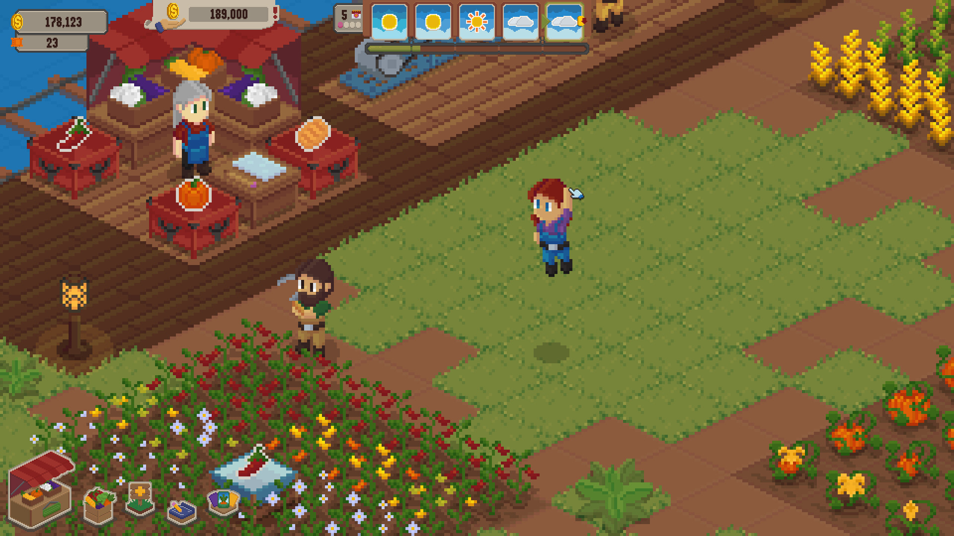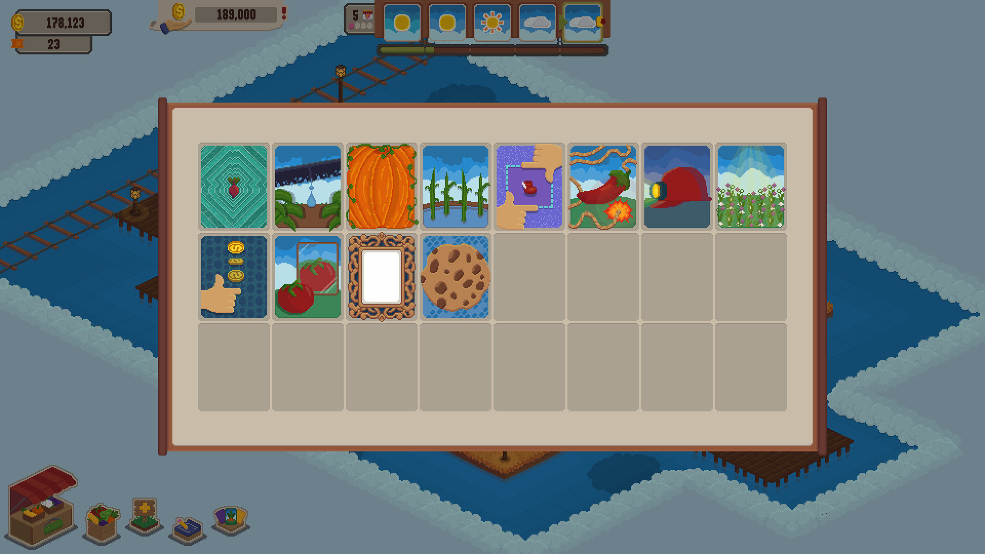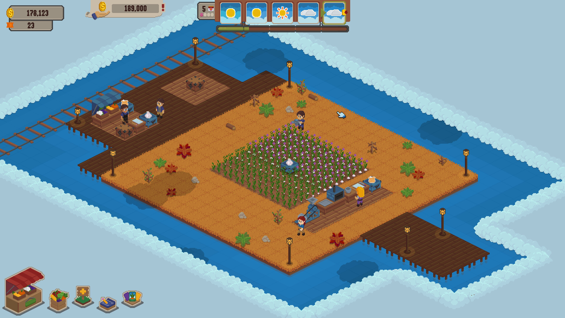 Build, create and manage your island! Combine crops, animals and helpers with unique modifiers and upgrades. Play a farming rougelike, where each run has different possibilities, with challenging weather and week-end rent, or build you island worry free and create a beautiful pixel art world.