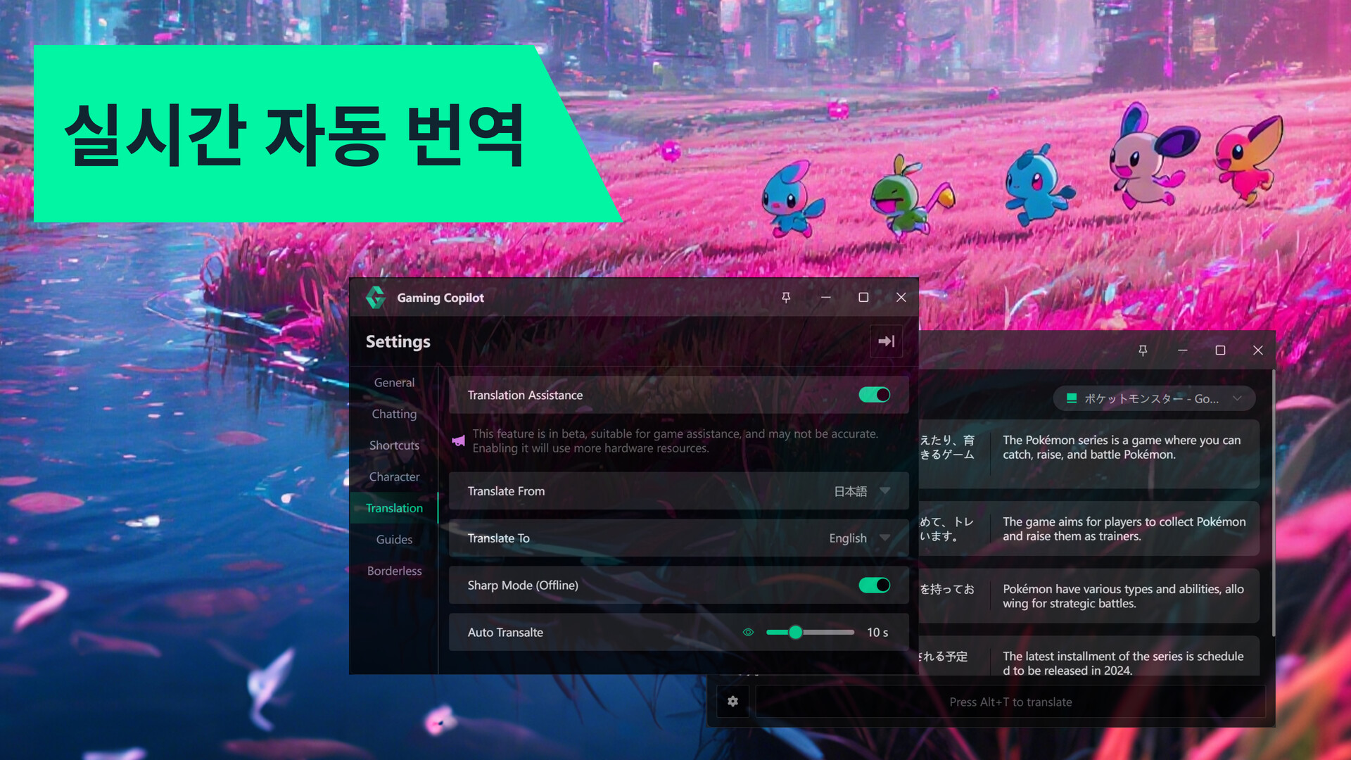 외국어 게임 때문에 고생중이신가요? 번역없는 게임이 고통스러우신가요? 두 가지 모드와 자동 번역으로 손 떼지 않고 게임 재미를 계속 즐기세요!