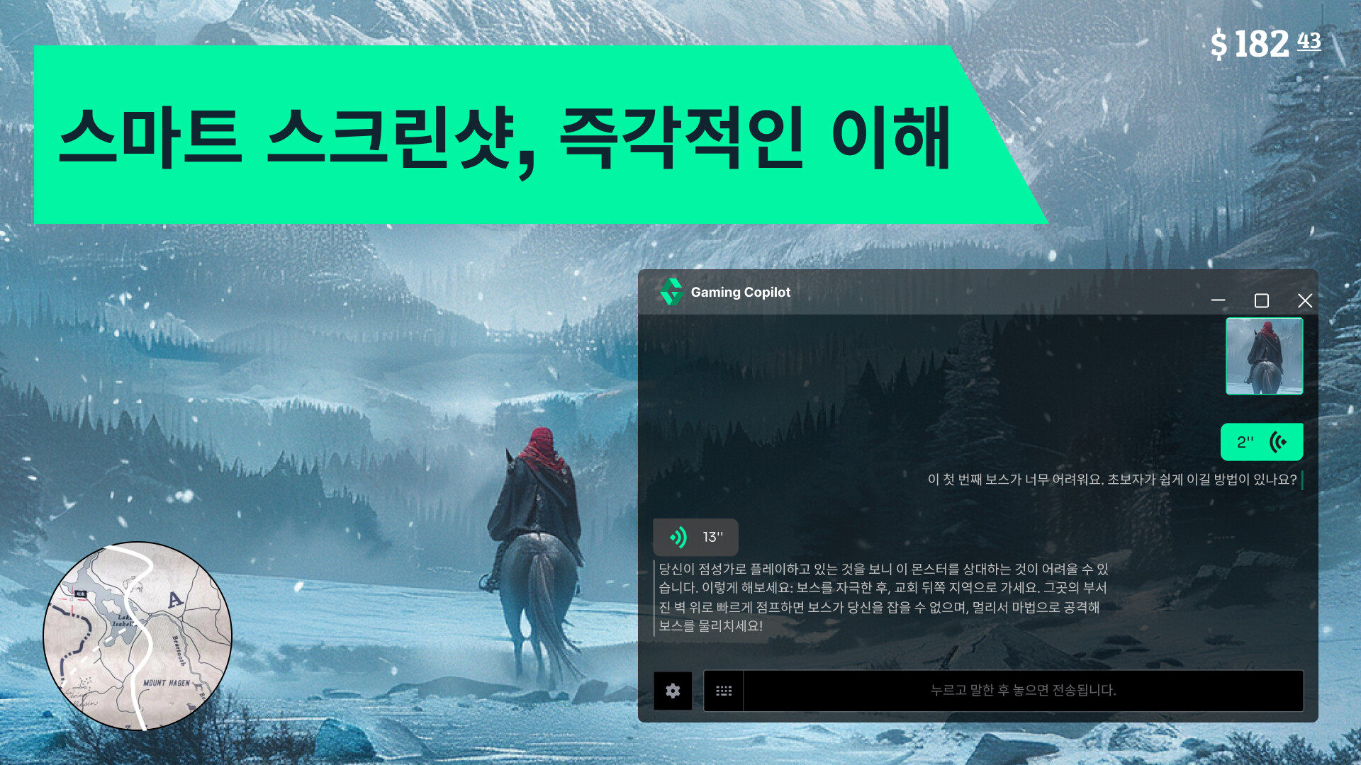 게이밍 코파일럿: 정확한 공략을 제공하는 AI 게임 파트너. 대형 AI 모델과 공식 공략 데이터베이스 기반, 음성 실시간 대화 및 스크린샷 분석 지원. 실시간 번역/테두리 없는 전체 화면 제어 등 기능 포함. 초보자부터 전문가까지 맵 탐험・레벨업・몬스터 사냥 지원!