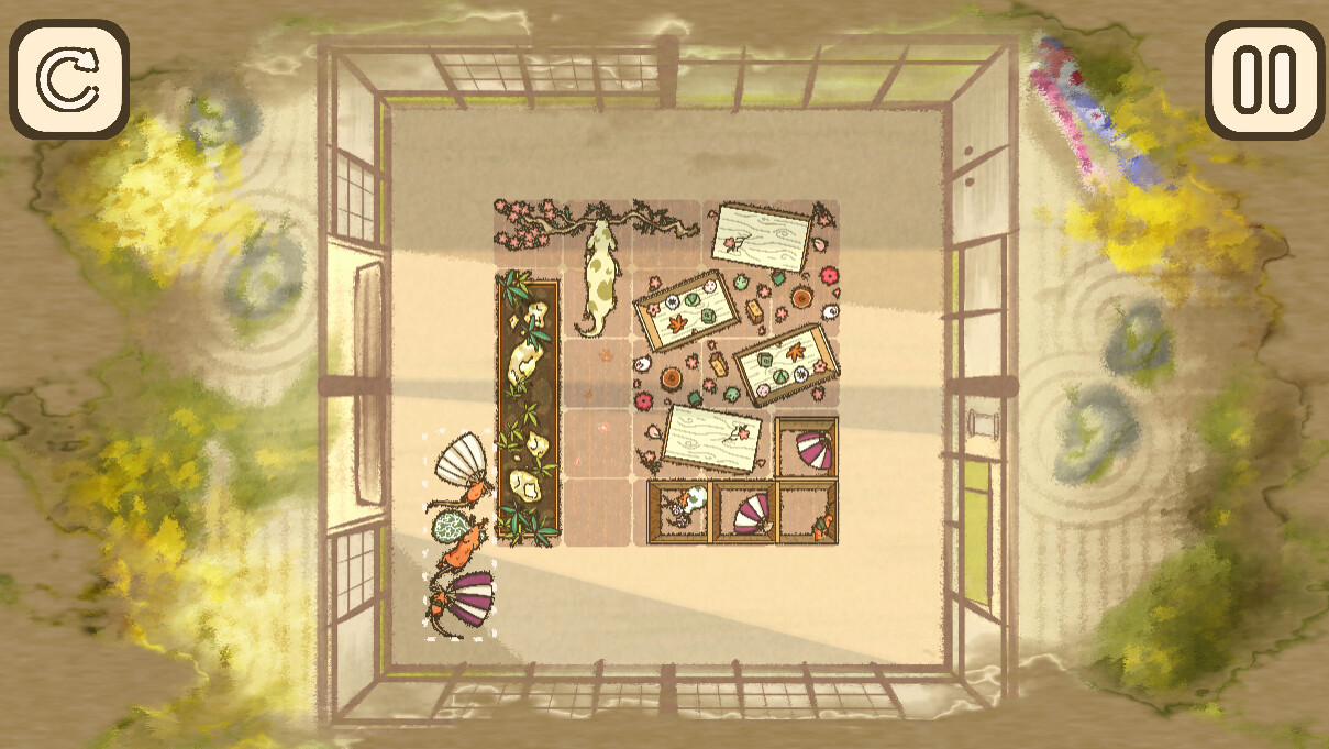 However, Kuru is a bit... of a neat freak, so he can't leave until he cleans up everything along the way! Help reorganize mats and bookshelves in a teahouse, fish and koi in a pond and much much more! Bring Kuru back to his family in this relaxing puzzle game.
