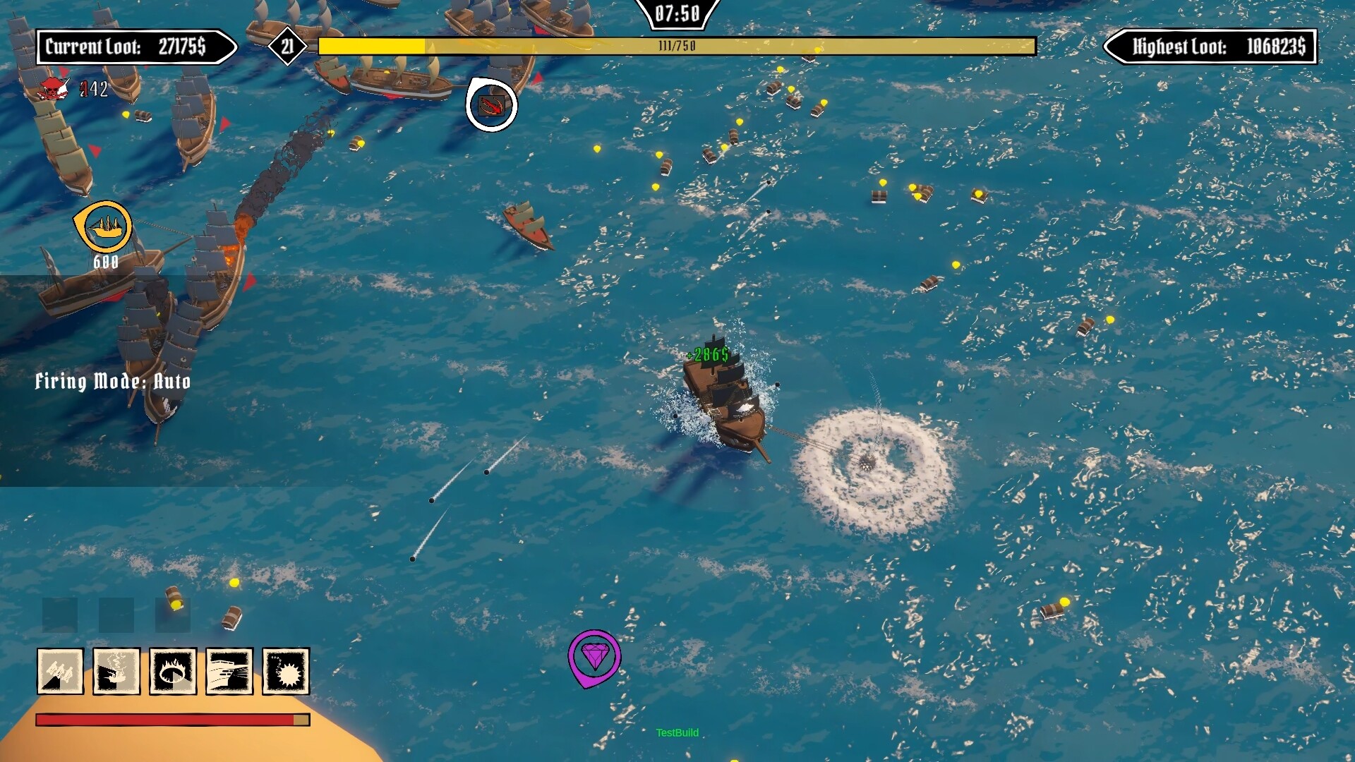 A pirate-themed, minimalistic, survivors-like where you dodge cannonballs, sink enemy ships, expand your arsenal, and loot their wrecks to climb the ranks. Upgrade your ship and become the ultimate pirate!