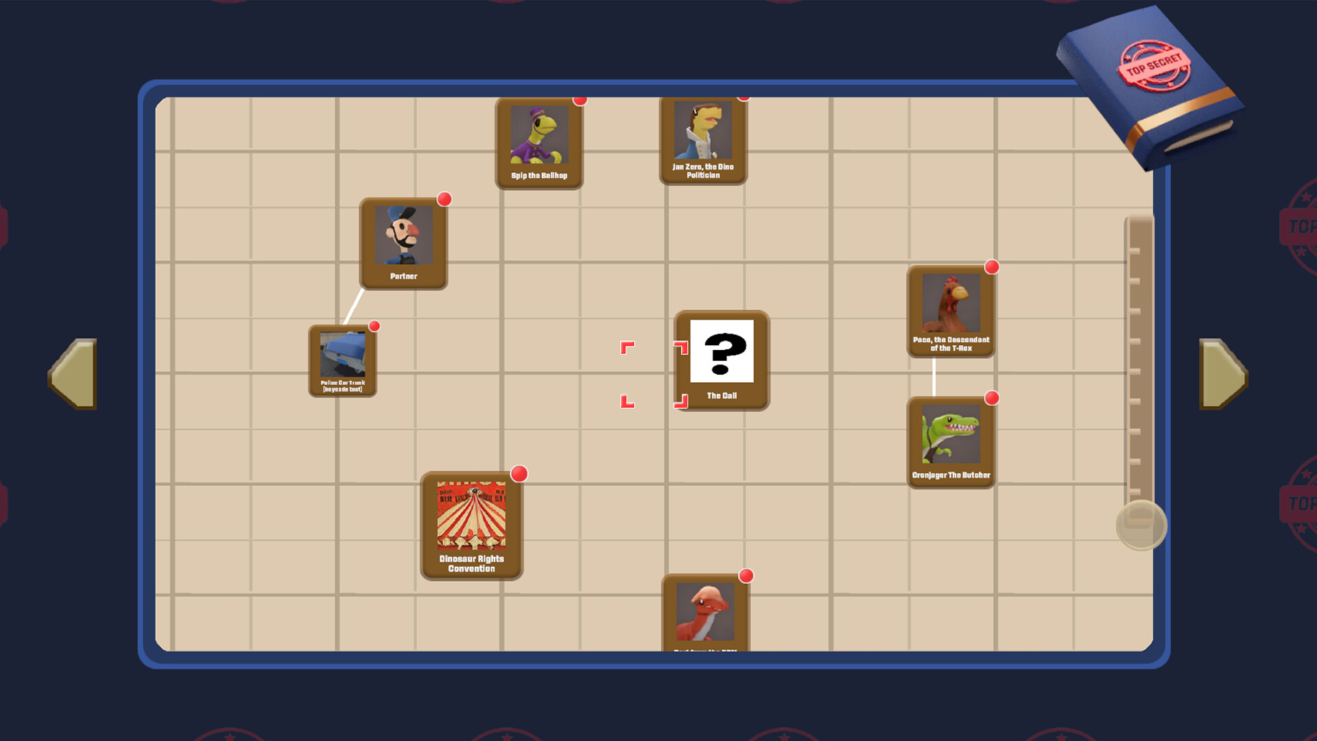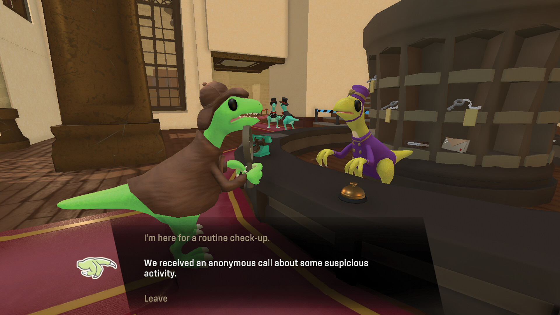 Humans had the silly idea of bringing dinosaurs back to life, and ever since, relationships between the two species have been strained. You were created in a laboratory to become the only dinosaur cop. Every day, you ask yourself: are you making the world better for your dino peers, or are you just a tool of human propaganda? The meaty case you'll face today might help you answer your most profound existential dilemma.