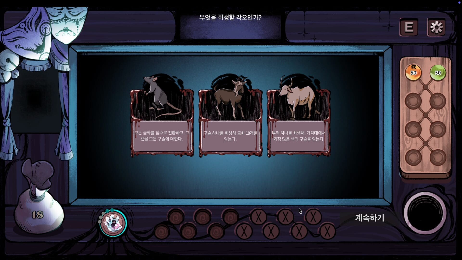 Carnaval Marbles는 시스템형 로그라이크와 프랑스식 당구의 결합입니다. 카니발풍 다크 판타지 세계에서 매 샷이 중요합니다. 배치, 쿠션, 그리고 탈리스만·구슬 보너스·룬의 시너지가 단순한 당구를 진정한 조합 엔진으로 바꿉니다. 같은 런은 두 번 다시 오지 않습니다.