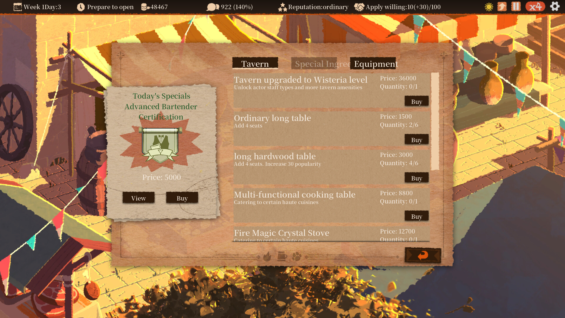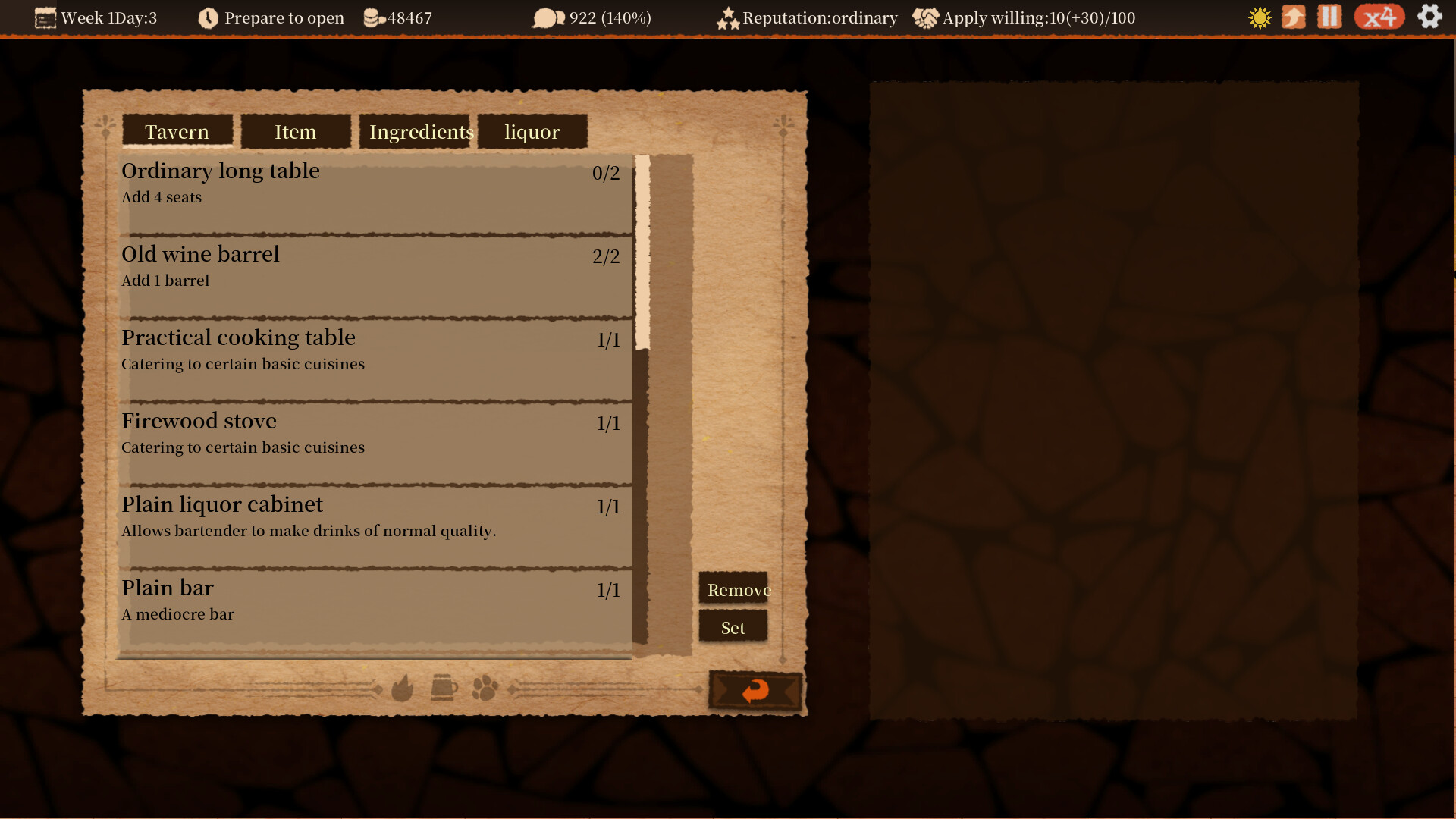No need to manually set up the location, you can just load up the decorations and add to the popularity of the tavern to keep the customers coming back.