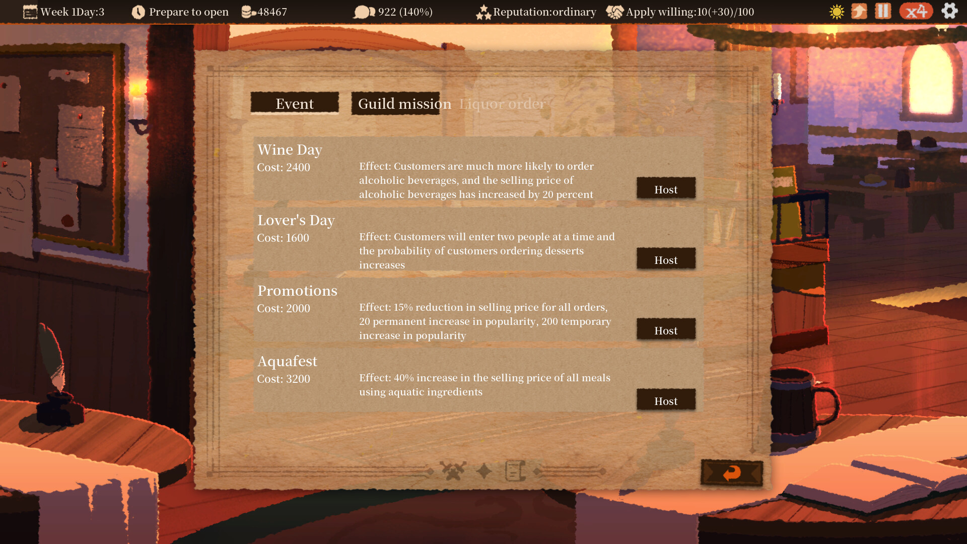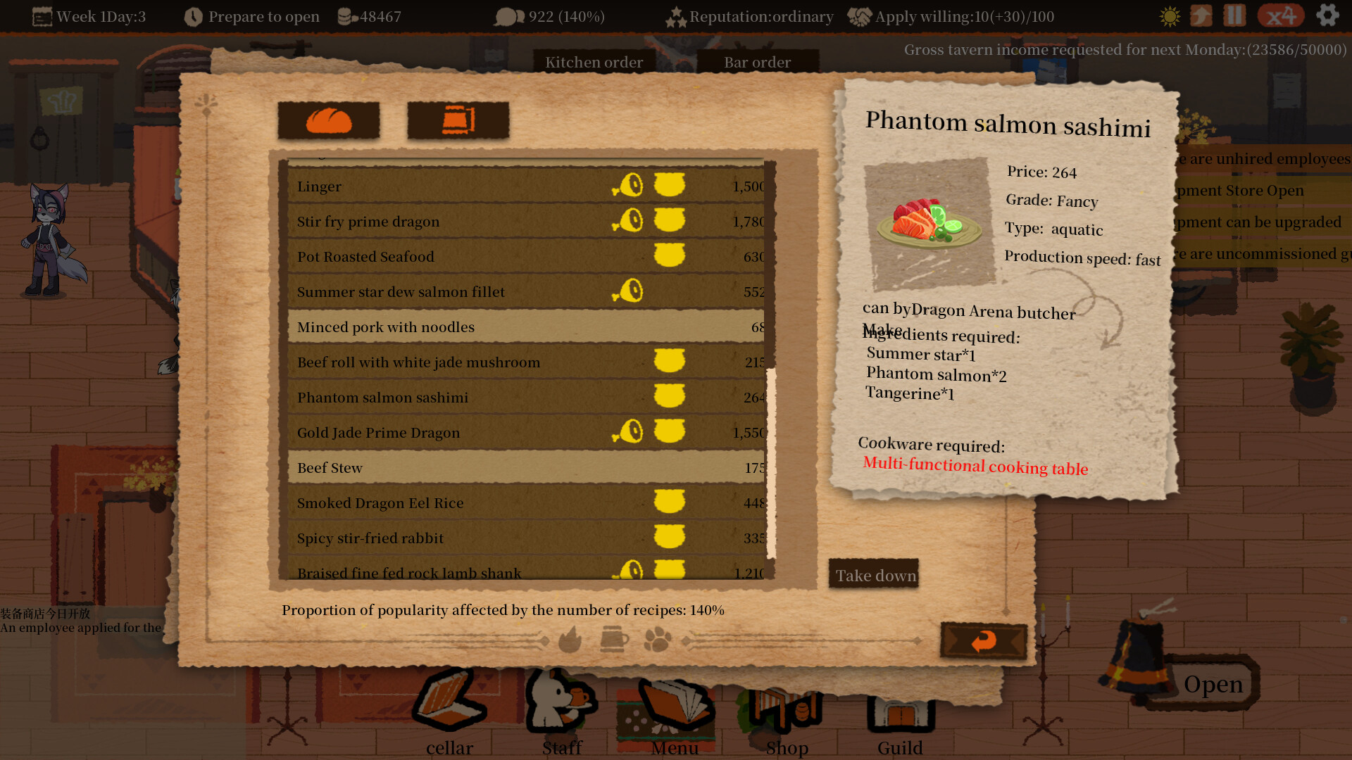 With hundreds of ingredients, dishes and drinks, you'll need to carefully organize your tavern's menu, and sometimes more recipes aren't better.