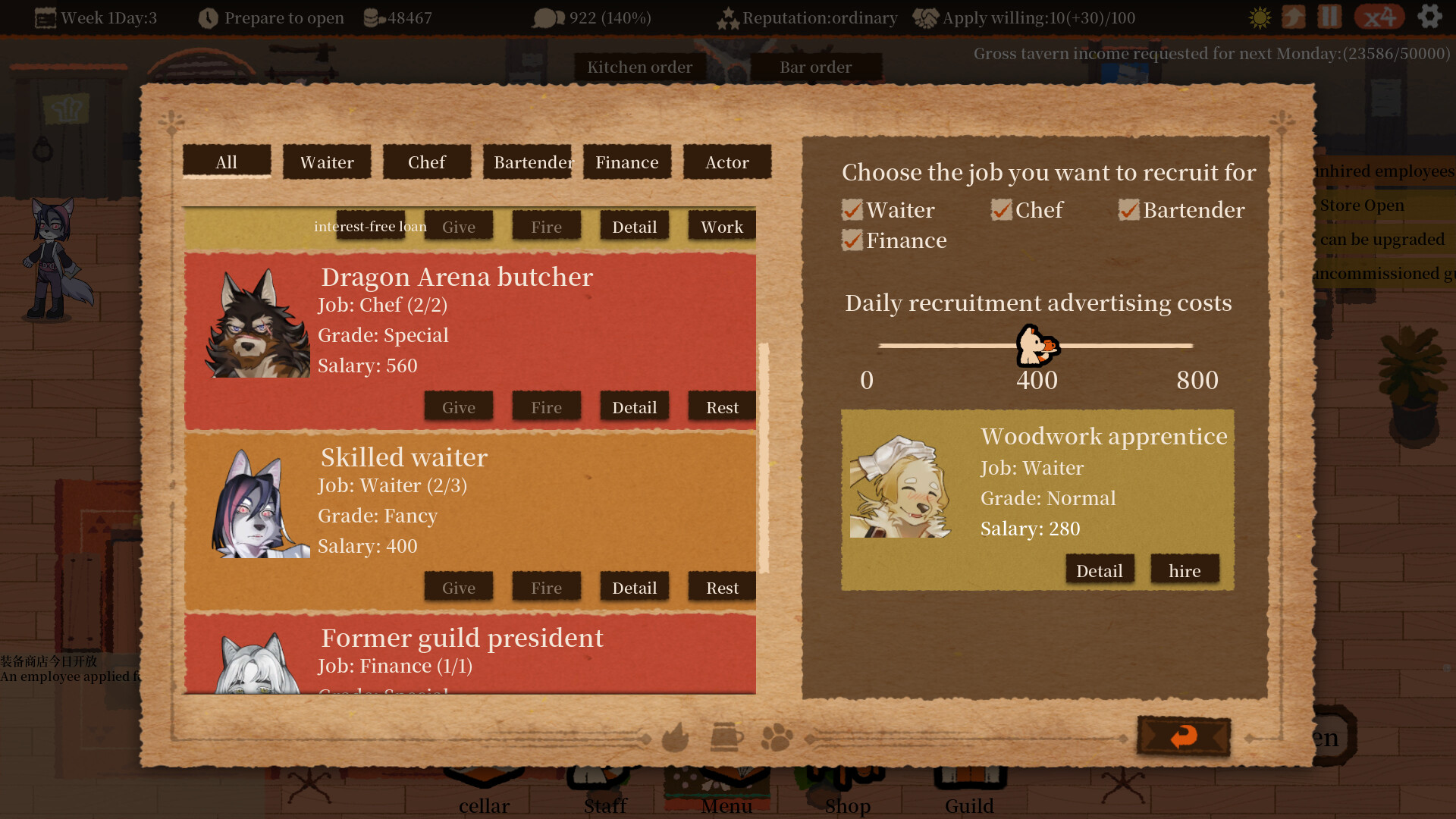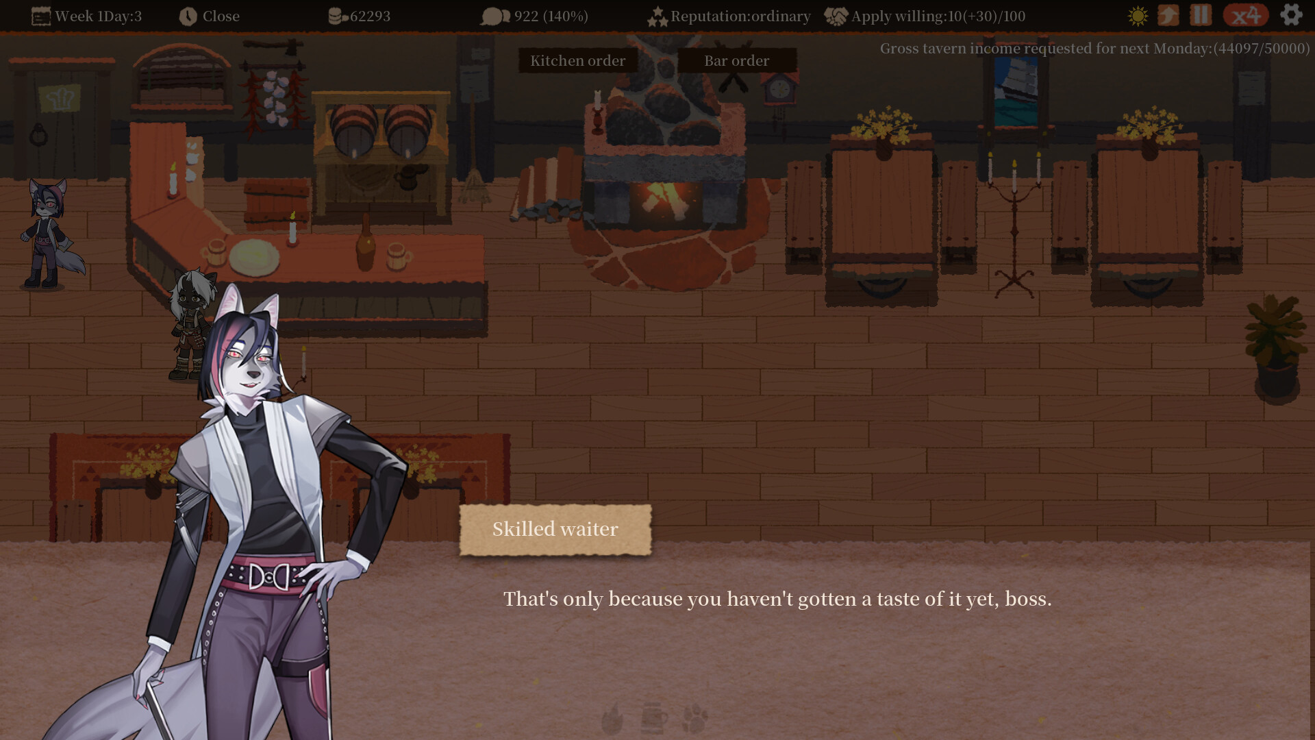 Employees of different professions and ranks, each with distinctive skills, are the key to making the tavern thrive. The employees also have colorful lives and stories, and everyone deserves a deeper friendship.
