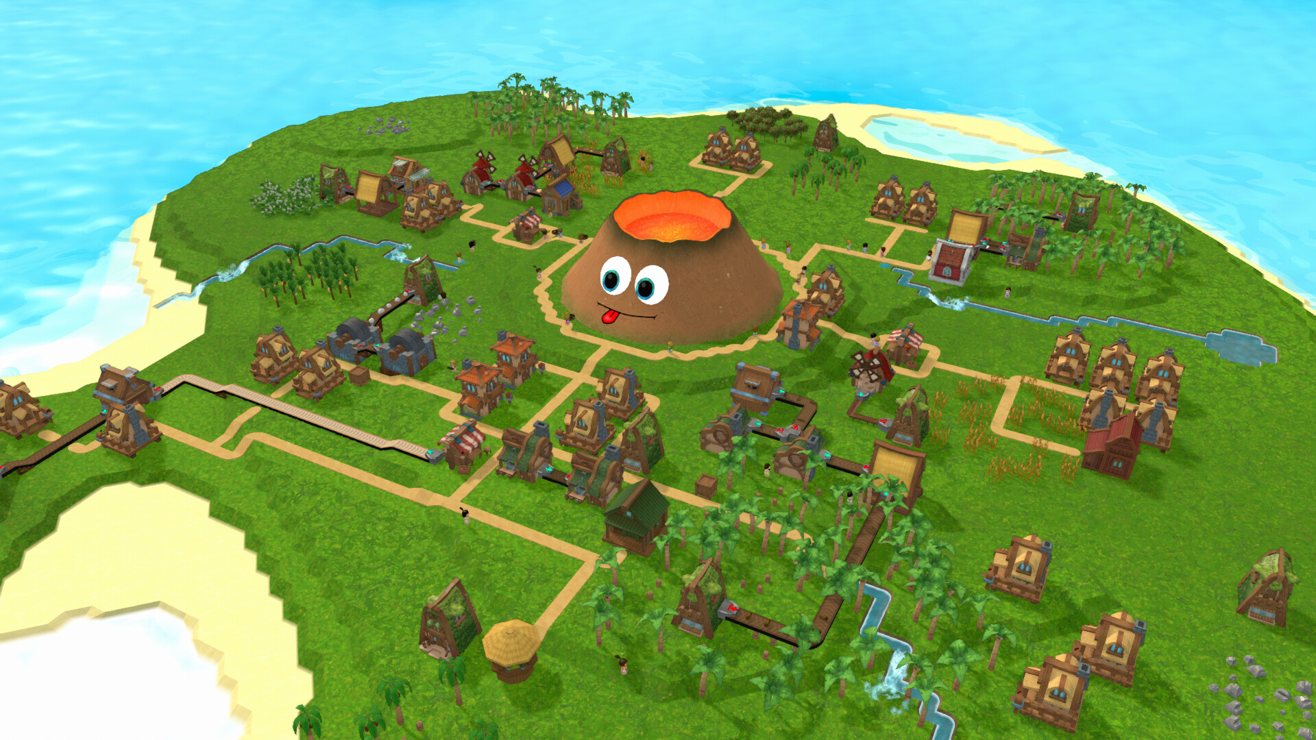 Build and automate a tropical island village at the base of a sentient volcano. Use conveyor belts, boats, trains, catapults and ziplines to produce and deliver everything your town needs!