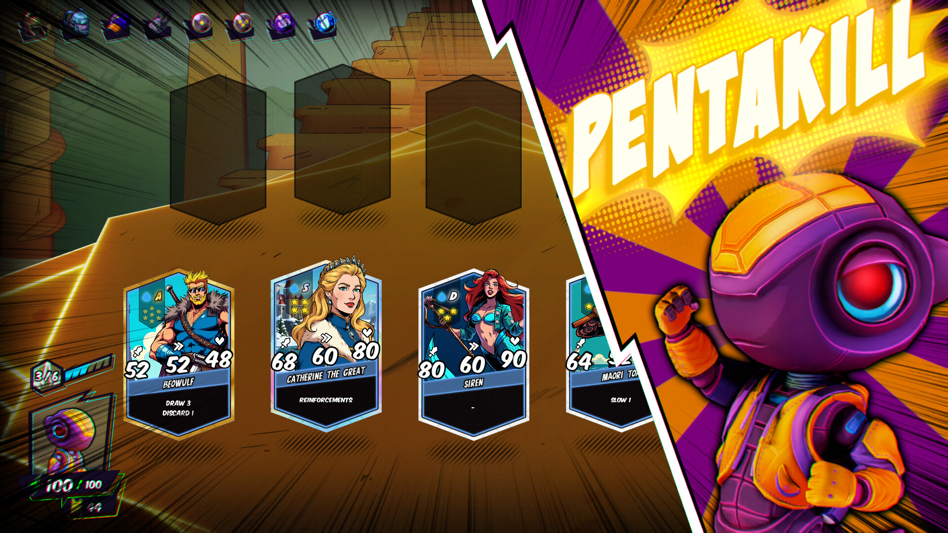 Squad Arcade is a roguelike deckbuilder with a fast-paced arcade twist, where robots collect ancient heroes and myths to fight in tactical card battles. Every run challenges you to build powerful decks, form unique squads, and master unpredictable challenges.
