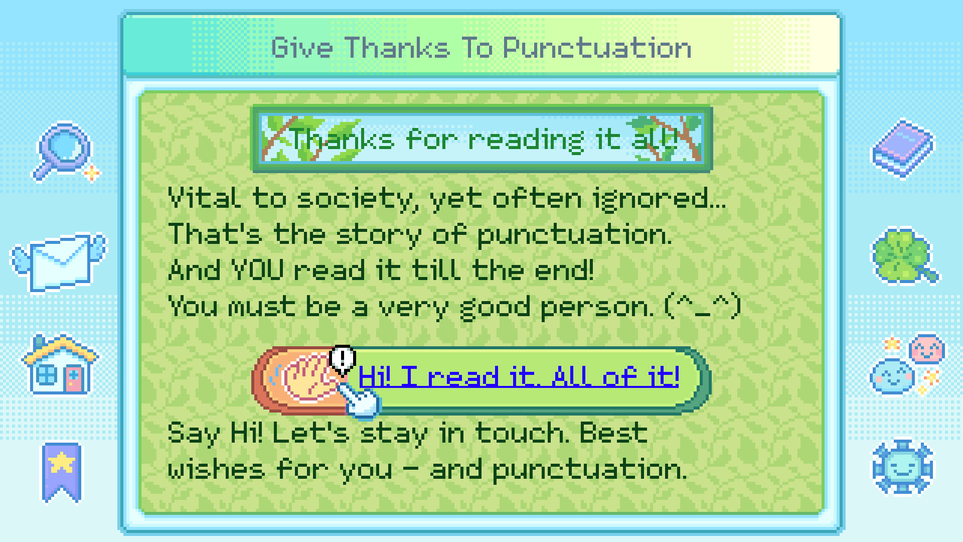 Hoshino's Dad made a special kind of internet just for neighbors — the NeighborNet. Search keywords to find pages to surf, and discover more about the strangers living in your danchi. Play minigames, or just “Say Hi!”