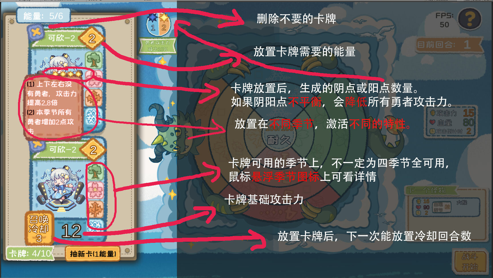 This is a light turn based strategy game. Mild pigeon element, combining the characteristics of different heroes with the four seasons, and coordinating the yin and yang points brought by heroes to continuously defeat stronger enemies.