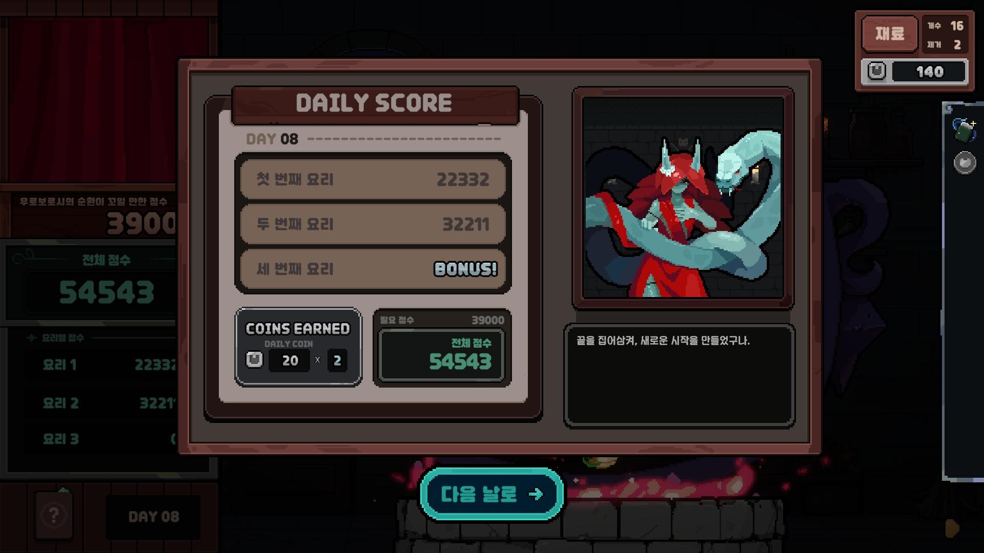 재료들이 가만히 있지 않고 마구 튕기고, 굴러다니고, 예측 불가능한 반응을 일으킵니다. 목표 점수를 빠르게 달성하면 가마솥 확장, 강력한 우주 유물과 같은 특별 보상을 획득할 수 있습니다.