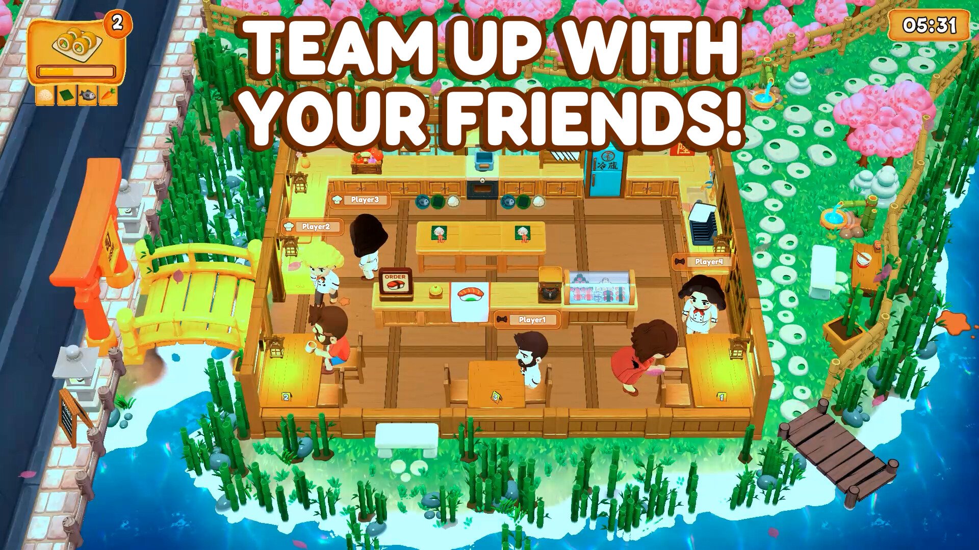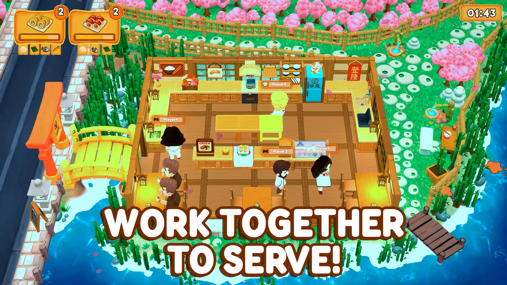 Or team up with friends in Online Multiplayer: one player plays as Chef, and the other as Waiter (each role should be played by at least one player), coordinating to prep, cook, plate, and serve.