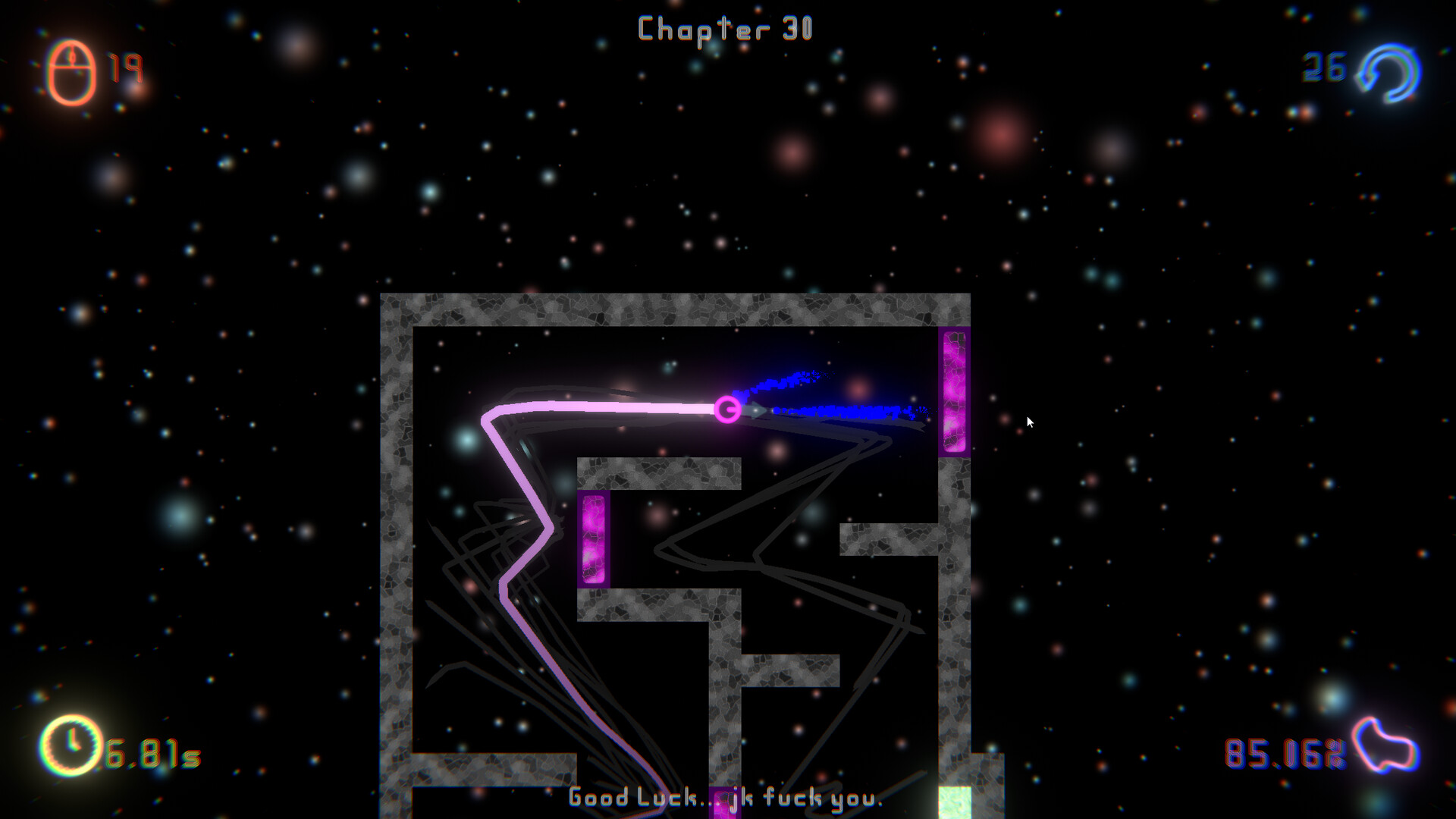 I AM PILL is a neon arcade skill based rage game. Play your way through many levels of crushing difficulty and varying mechanics. Enjoy difficult, but fair gameplay with unforgiving precision and timed accuracy. Start simple with the early levels and become a pro at the end of the game. Restart hundreds of times and finally complete that nearly impossible level. Stay focused on the scores you care about and enjoy the game how you wish. Go through without resetting, with as much flow as possible, in the least amount of time, or with the fewest clicks. Create your own challenge inside the gameplay loop! Persevere the game's brutal mockery all the while you explore the themes of addiction and triumph.