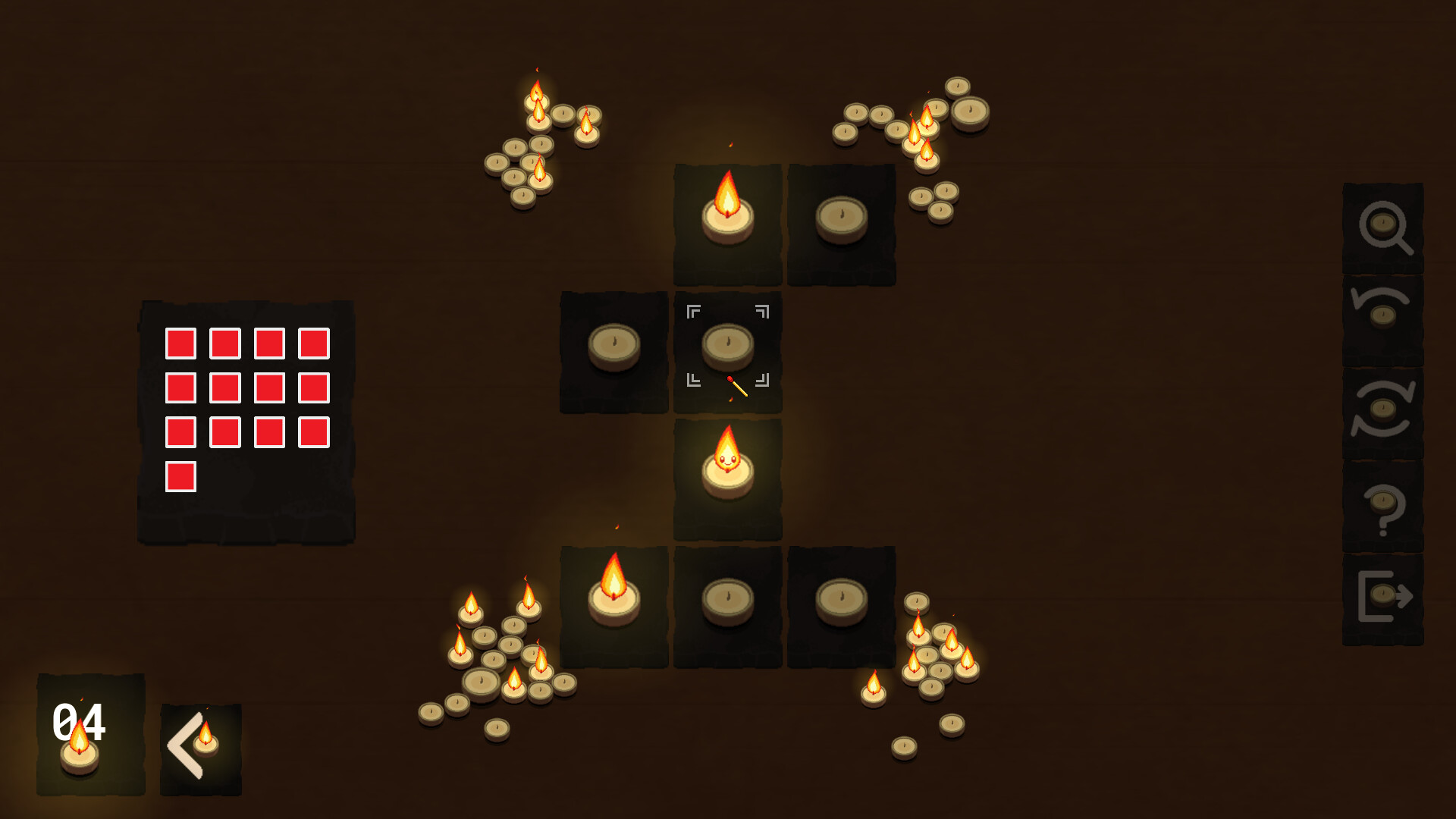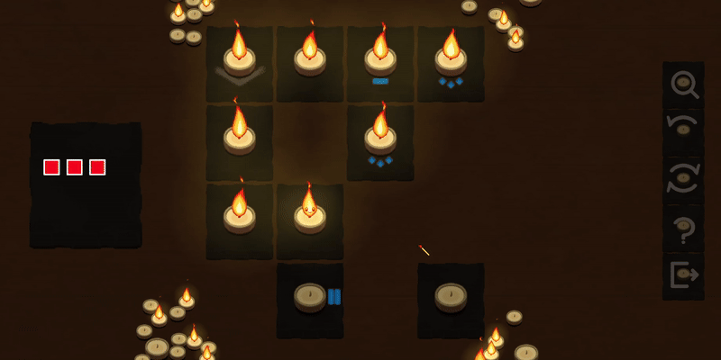 Hop between candles, matches and other fuels in this tile based puzzle game; where the goal is simple: light all candles before your flame flickers out. Deduce and discover the rules and mechanics, then put your understanding to the test as the difficulty ramps up.
