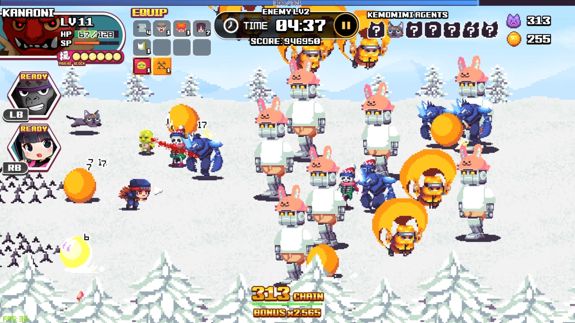 Finding three "secrets" (hidden items) hidden somewhere in a NORMAL stage will bring you to the HARD mode, a higher difficulty level. In addition, new characters and skills can be unlocked by clearing stages and meeting certain conditions.