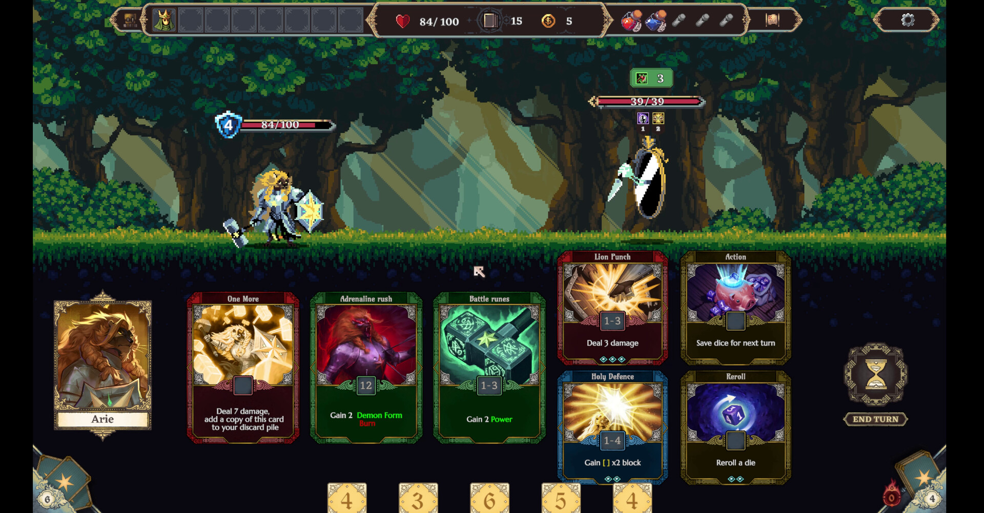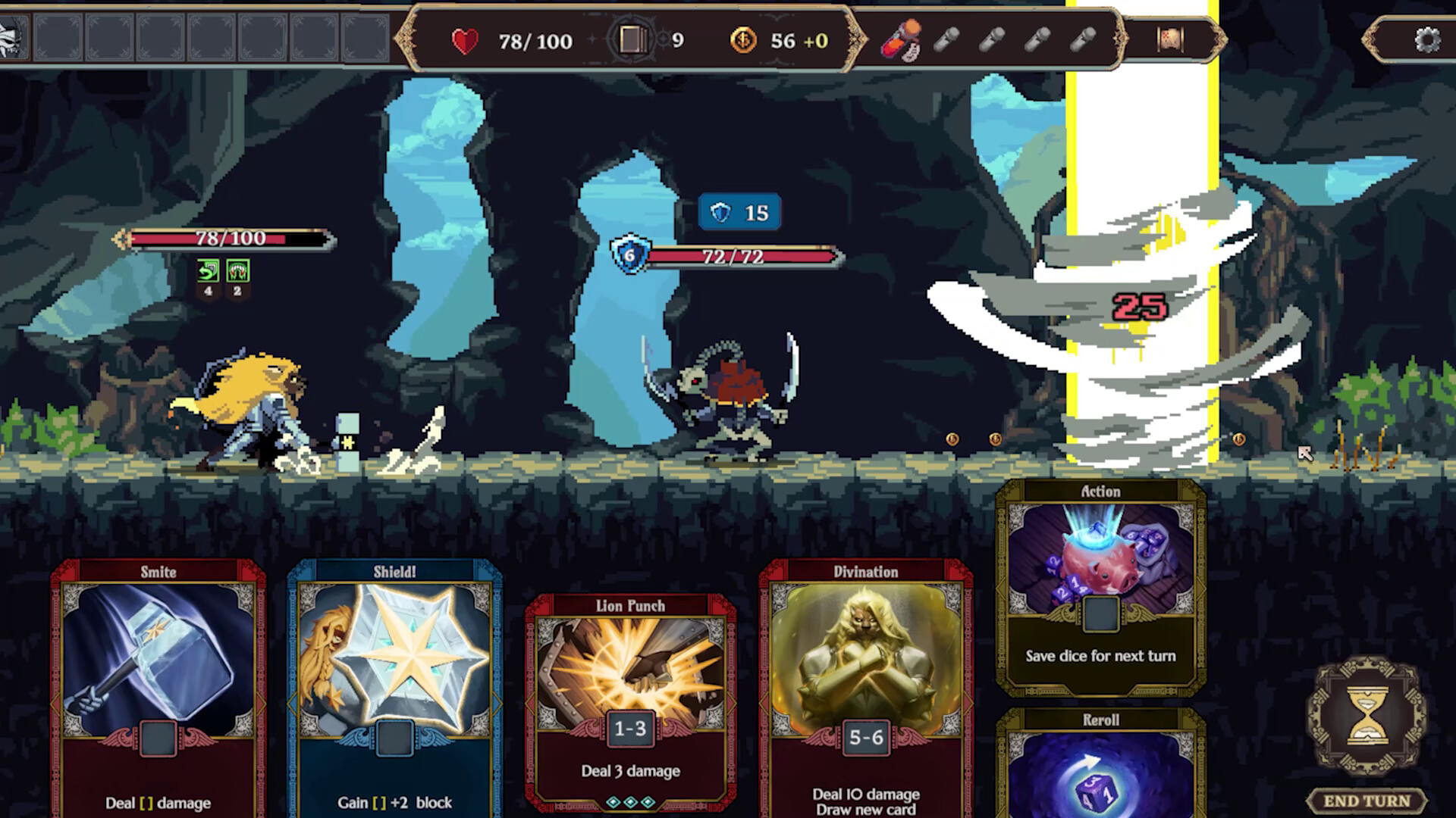 Roll a pool of dice each turn and draw cards from your deck. Next, use dice to activate cards and set up your defense, debuff the enemy, or deal as much damage as you can. The more card-dice synergies you discover, the more unstoppable — and satisfying! — your combos become.