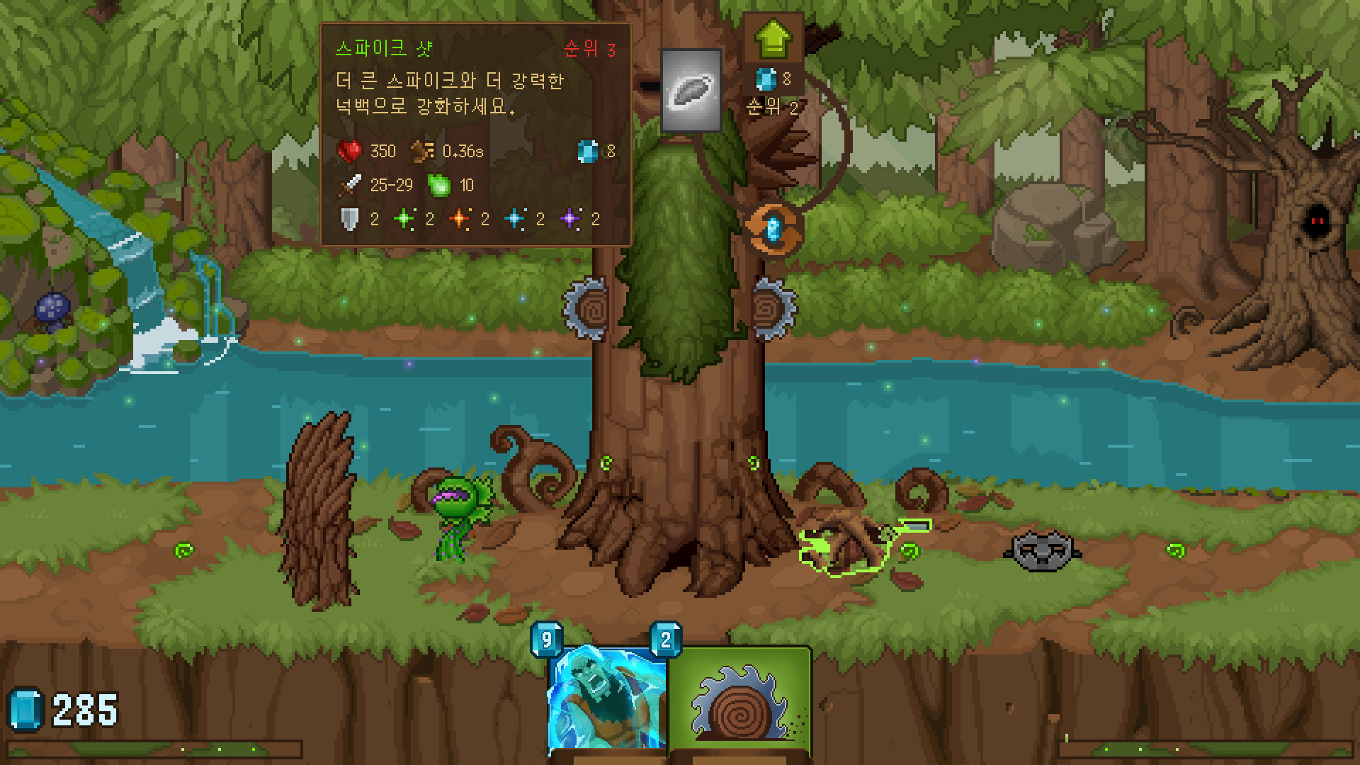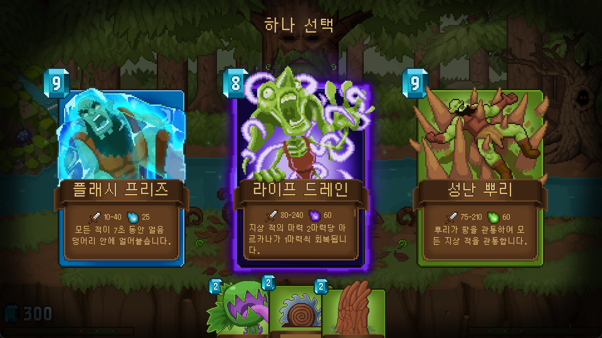 당신은 나무에 깃들어 중세 오크 군대에 맞서는 치명적인 방어 수단으로 바꾸는 엘프 유령입니다. 나무가 쓰러지면 숲은 불타버립니다. 진화하는 적의 물결 사이에서 덱을 구성해 독특한 환경에 적응하고 승리를 쟁취하세요.