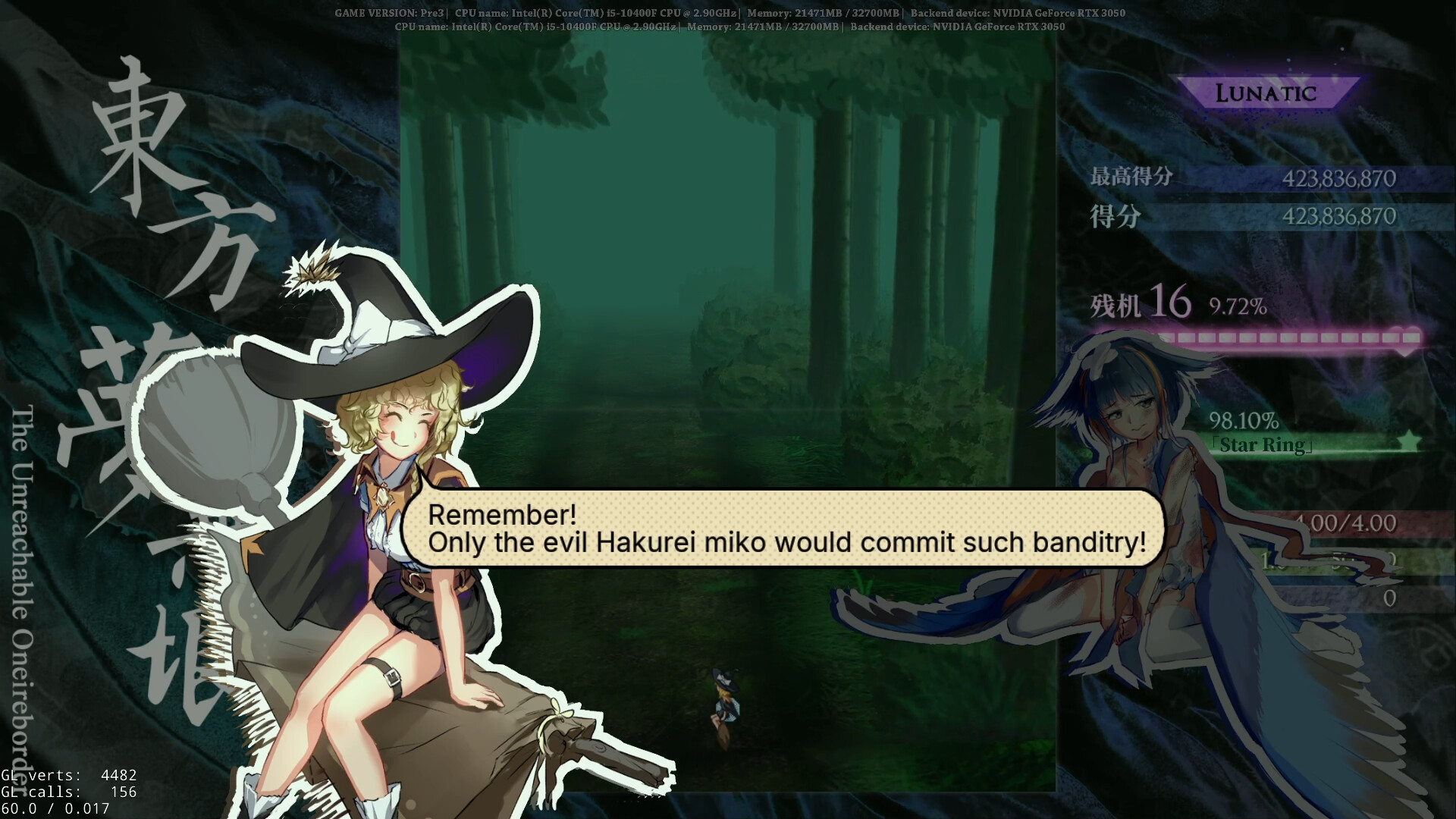 “The Unreachable Oneiroborder” is a Touhou Project danmaku shoot-em-up fangame. The game is easy to learn, regardless of your prior experience with bullet hells.
