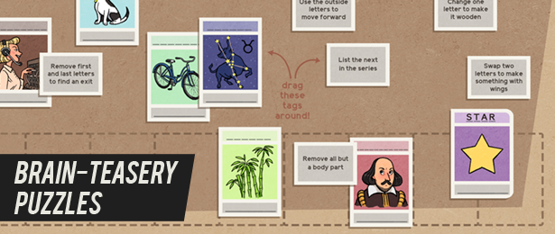 Every puzzle along your path is a unique challenge for you to uncover and figure out how to solve. Bring your wordplay, logical deduction and deciphering skills. Figuring out the intent of each puzzle is half the fun, so put on your thinking cap and go-go boots and get to work!