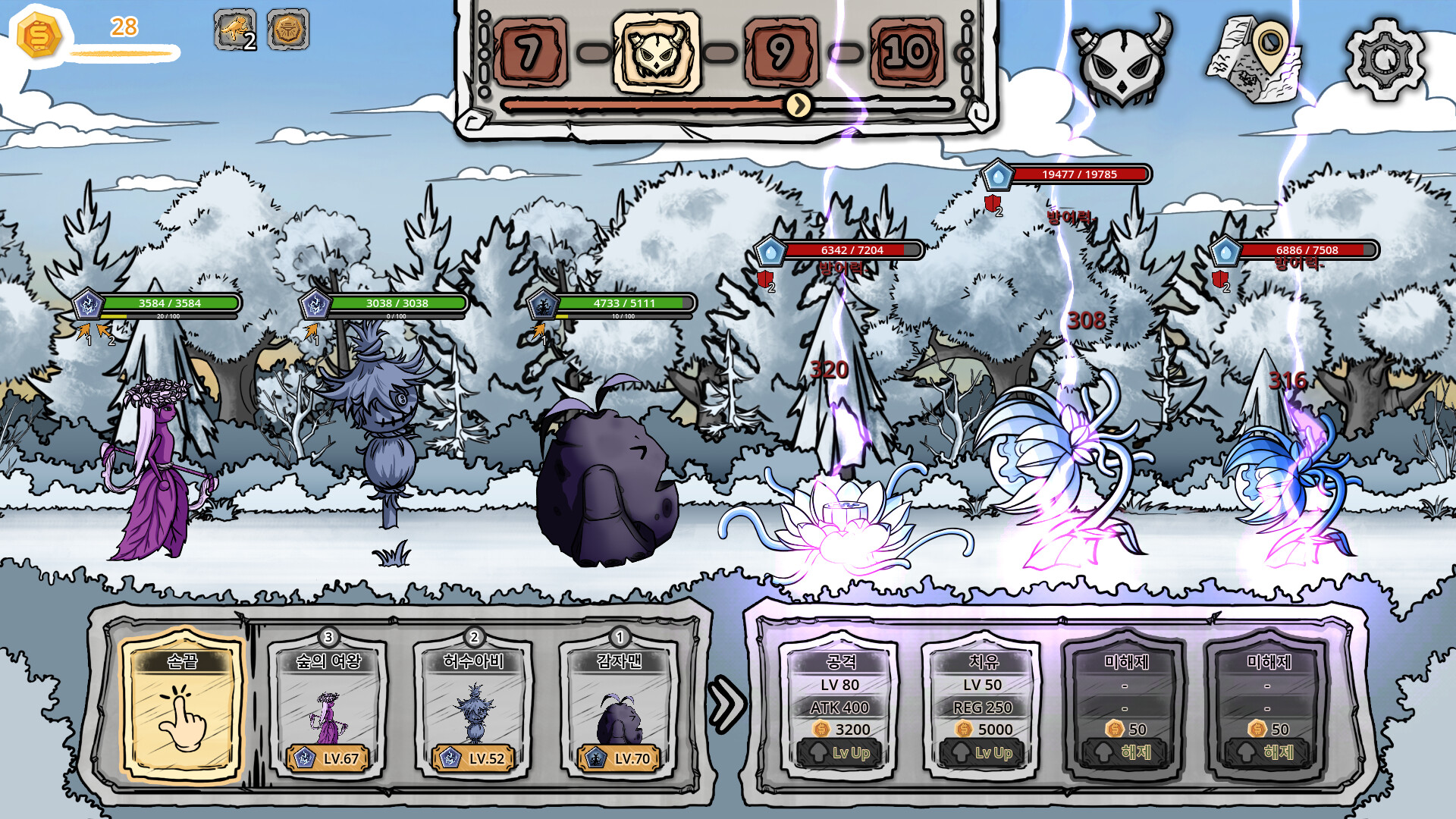 레벨 업 및 진화: 영웅 레벨 향상, 더 강력한 스킬 해금