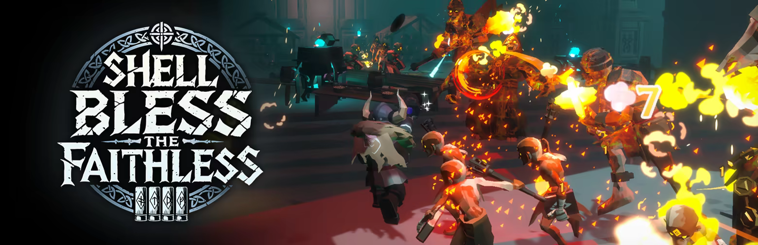 [쉘 블래스: 더 페이스리스]는 북유럽의 전사가 되어 활약을 펼치는 1~4인 플레이 지원 3인칭 로그라이트 슈터 게임입니다. 룬, 마법, 샷건이 공존하는 혼돈의 세계 속에서 신들의 은총을 받아 이단적인 사상을 가진 적들과 배후의 리더들을 심판하고 마초적인 세상을 재건하세요!