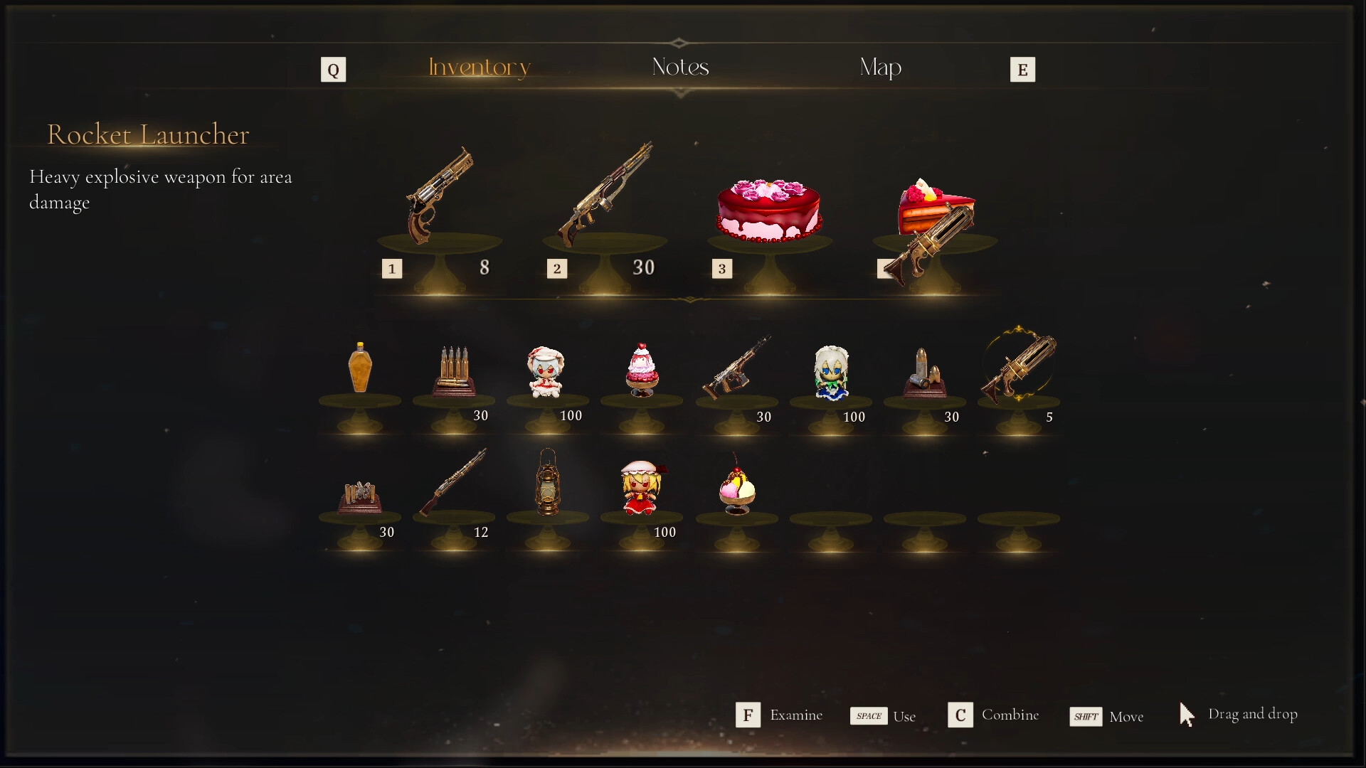 Cakes, pastries, and sweets are more than items. Throw food to lure enemies, feed them directly to change their form, or save your ammo for when hunger fails.