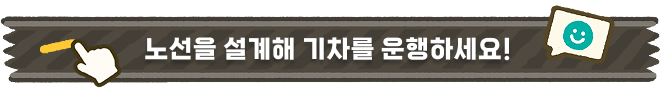 여러분이 설계한 철도를 따라 기차가 운행을 시작해요.