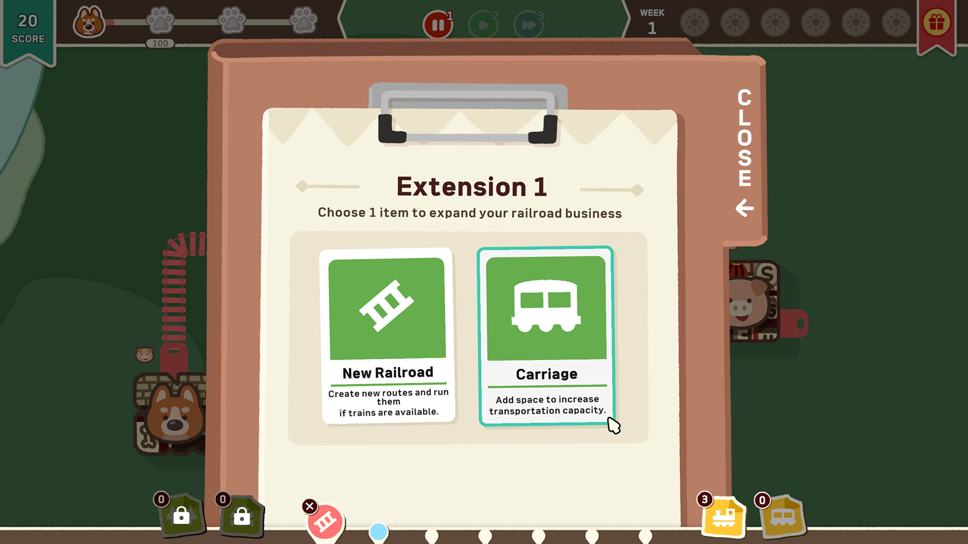 기차 노선을 설치하거나 삭제할 수 있으며 높은 점수를 얻기 위해 노력해보세요!
